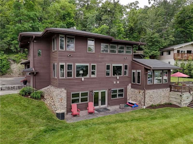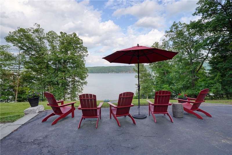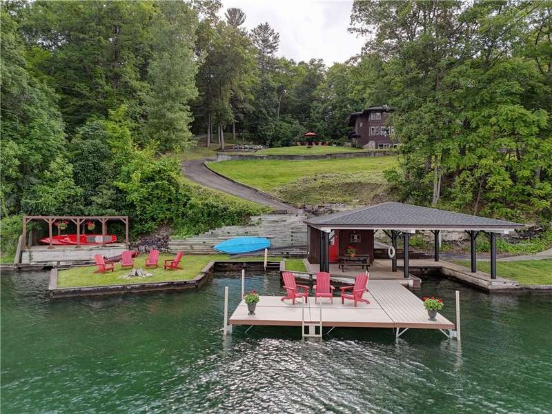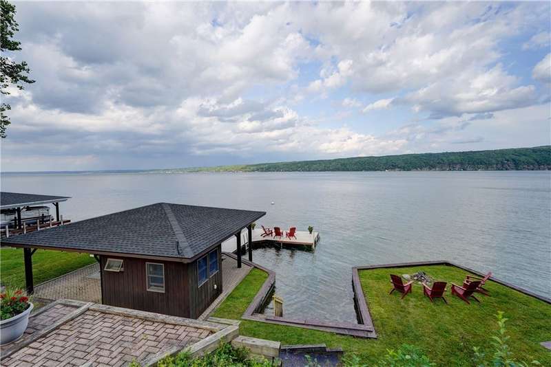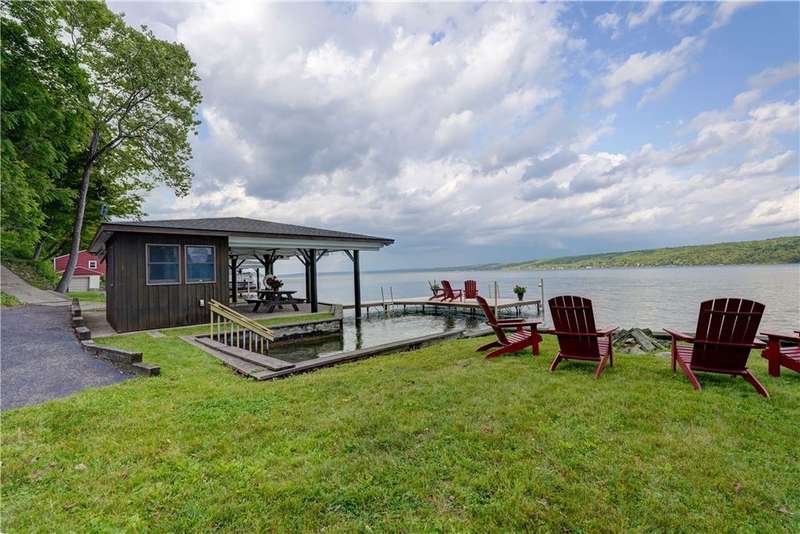 Secluded westside Canandaigua Lake home with 105 ft of water frontage. This beautiful home provides ultimate privacy on 6 acres - along with breathtaking views. Originally built in 1940 with completely rebuilt interior/exterior (2009-2010). House regraded/excavated for light-filled finished walk-out lower level. Tax records reflect 2292 sq ft but architectural measurements reflect 3100. Spacious warm kitchen complete with Wolf stove (2025) and large eating area. Original charming stone fireplace with gas insert (2021) in expansive family room leads to charming Antler Room with inviting views of the lake. First floor bedroom and full bath complete the first floor. The second floor has four bedrooms - three of which are ensuite! The amazing lower level overlooks the lake with space for TV viewing, ping pong, and extra flex space. The large laundry room includes two washers and dryers (2020). Steps away from the front door is a large gas firepit (2022) where you can relax after a long day of water activities. Boathouse was rebuilt in 2000 with 1/2 bath, and new roof (2023). New extended dock (2024) provides ample space for swimming, fishing and boating. Pella triple pane windows with built-in shades, efficient in-floor heating and new roof (2025) make this a truly year round retreat. Agent related to owner. Please make all offers good for 24 hours. Seller will provide existing survey (dated 4/2023) with an affidavit of no charge.