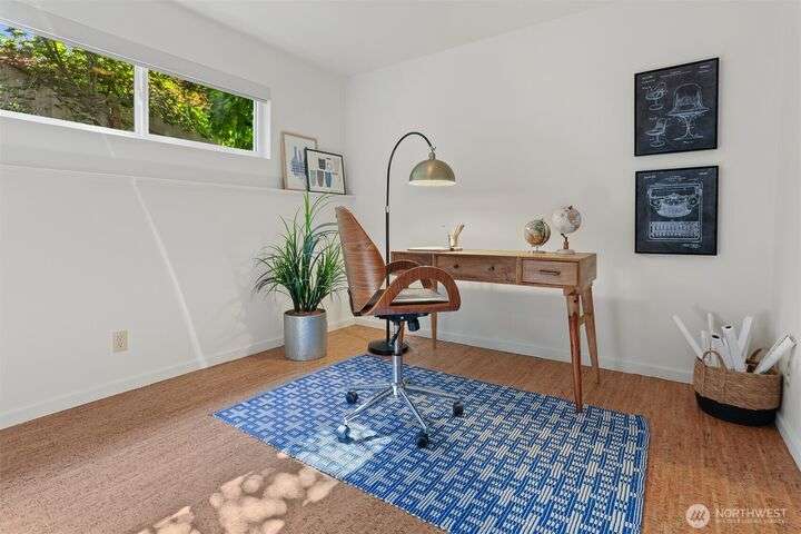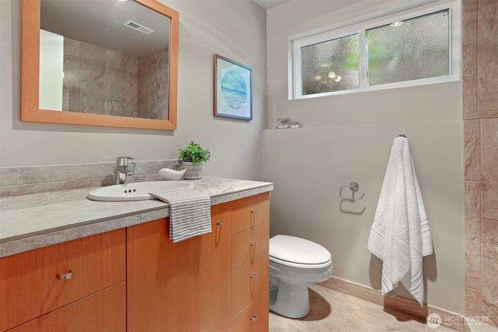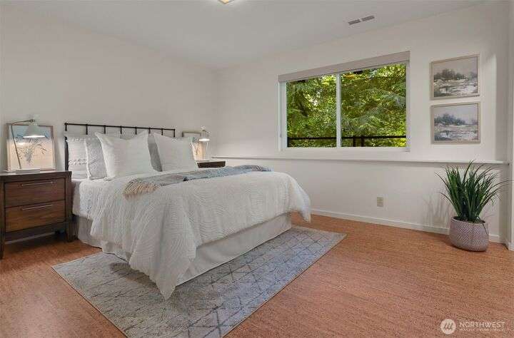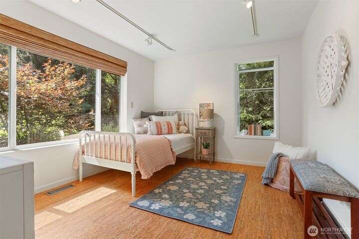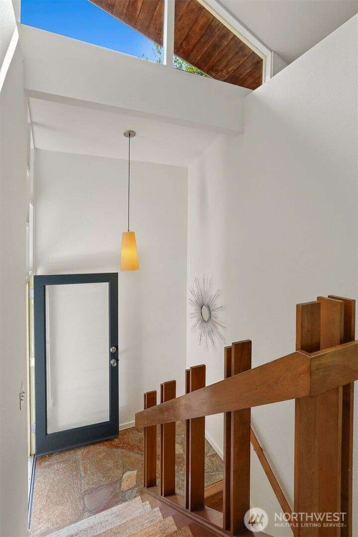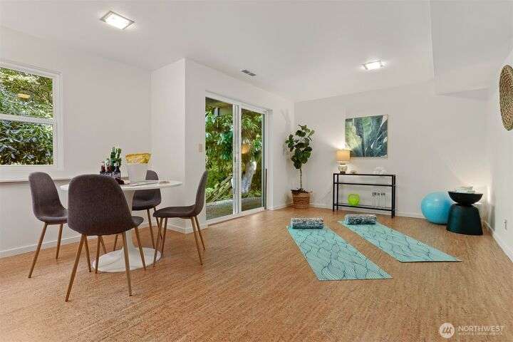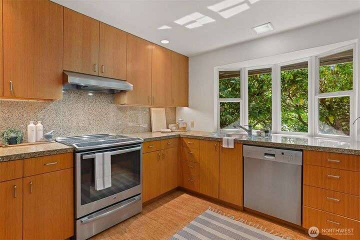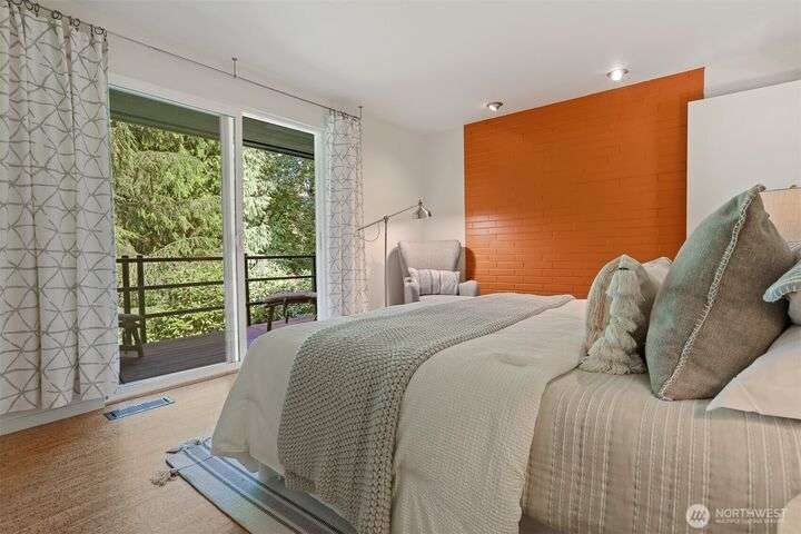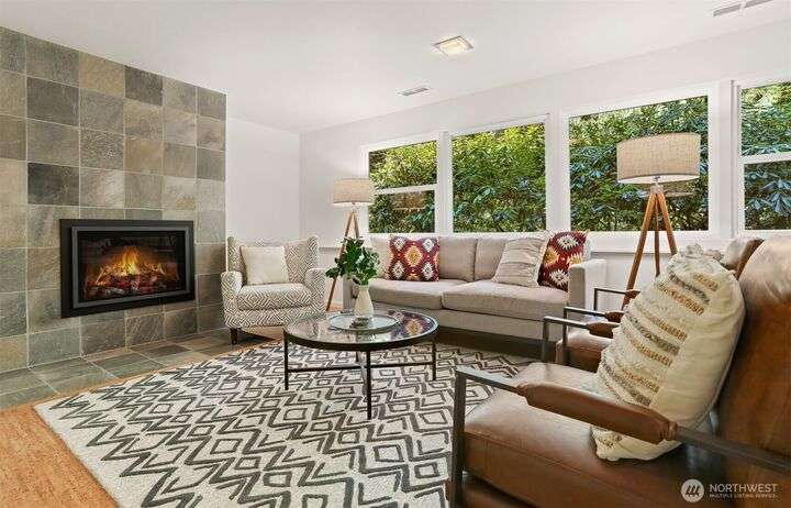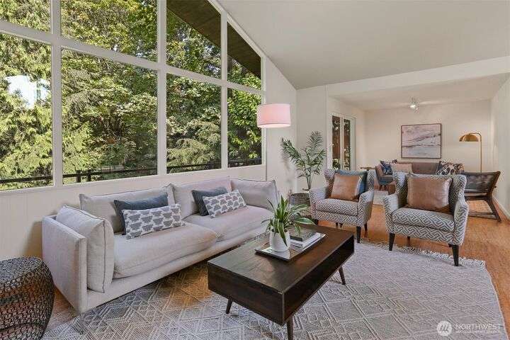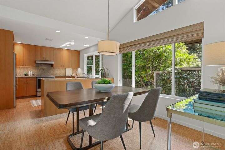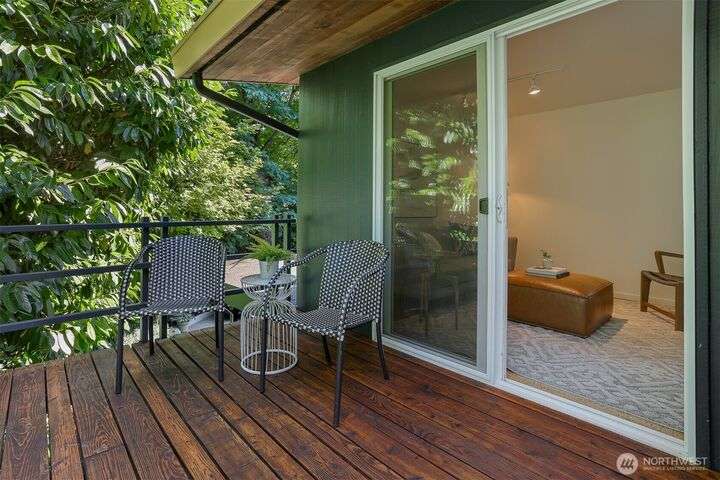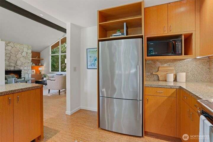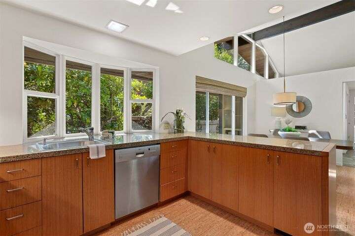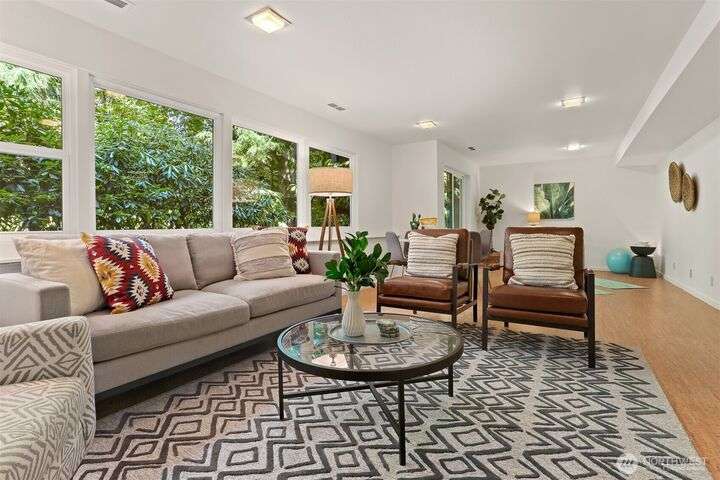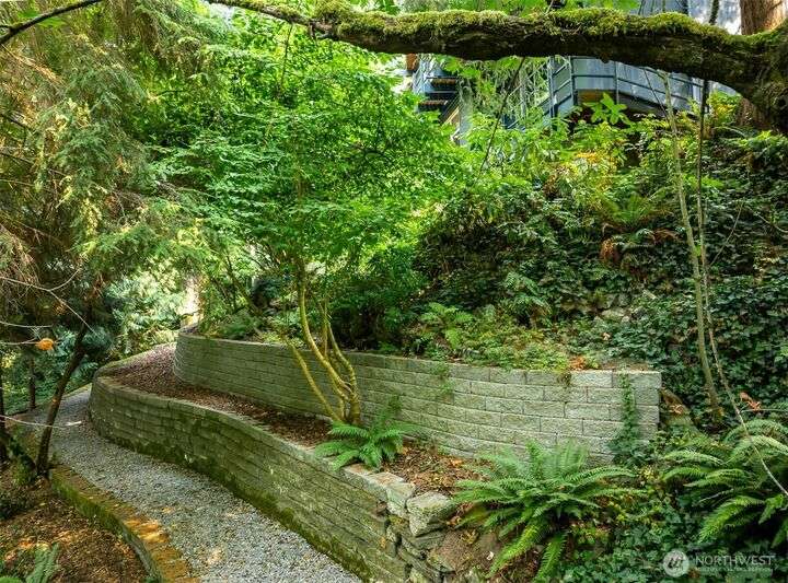 Tucked at the end of a private lane, this mid-60s North Beach treasure has been lovingly maintained and modernized. A striking slate entry opens to soaring ceilings and walls of windows that flood the living room with light and frame serene forest views. The open kitchen and dining area shine with high-end finishes and appliances. With 4 bedrooms, 2 beautifully remodeled baths, a huge rec/flex room, and abundant storage, there’s space for everyone. Cork floors and fireplaces on each level add warmth. Professionally landscaped grounds feature terraced gardens, a water feature, two decks, and abundant views of wildlife. Quiet and spacious, perfect for entertaining or relaxing, yet just minutes from shops, dining, and the beach.