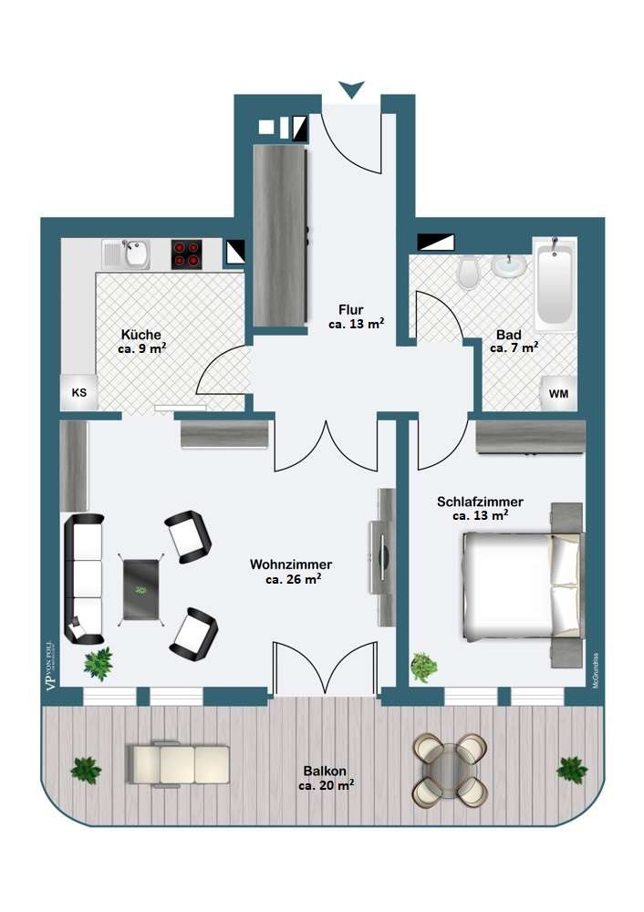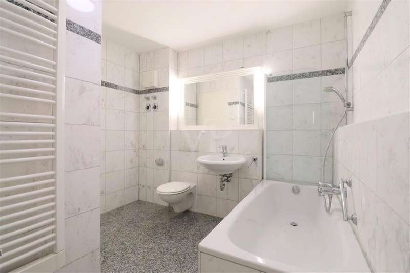 Here we offer you a spacious two-room apartment in a very well-kept building complex. The elevator takes you barrier-free to your apartment floor with fantastic views. You enter the apartment and an open hallway with modern integrated built-in wardrobes opens up, giving you access to all other rooms. A special highlight is the approx. 20 m² covered south-west-facing balcony, where you can enjoy cozy hours with fantastic views at any time of year. The hallway/bedroom and living area are laid with parquet flooring. The kitchen area is tiled and equipped with a small fitted kitchen, but can be replaced at your own expense in consultation with the landlord if required. The entire apartment has underfloor heating. The elevator takes you down to the basement, where a spacious cellar compartment is available. An outdoor parking space for your car can be rented on the property for € 50 per month. Arrange a viewing appointment with us quickly and let us convince you personally of the advantages of this fantastic apartment.