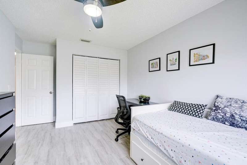 Welcome home to this completely renovated corner unit surrounded by beautiful lake views! Enjoy all the completed upgrades in a spacious, open kitchen with stainless steel appliances, modern celling fans, newer water heater, and some Hurricane Impact Windows! The backyard is fully fenced and includes a paved area to relax, enjoy the Florida weather, and do some grilling. Talk about location- minutes away from Palm Beach International Airport, I95, downtown and major shopping.