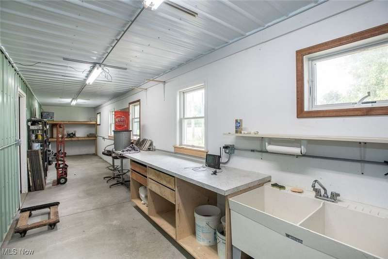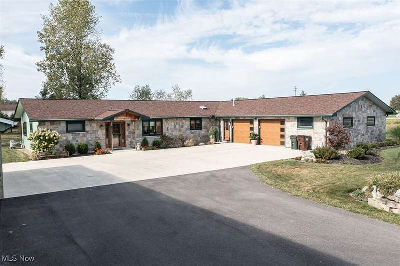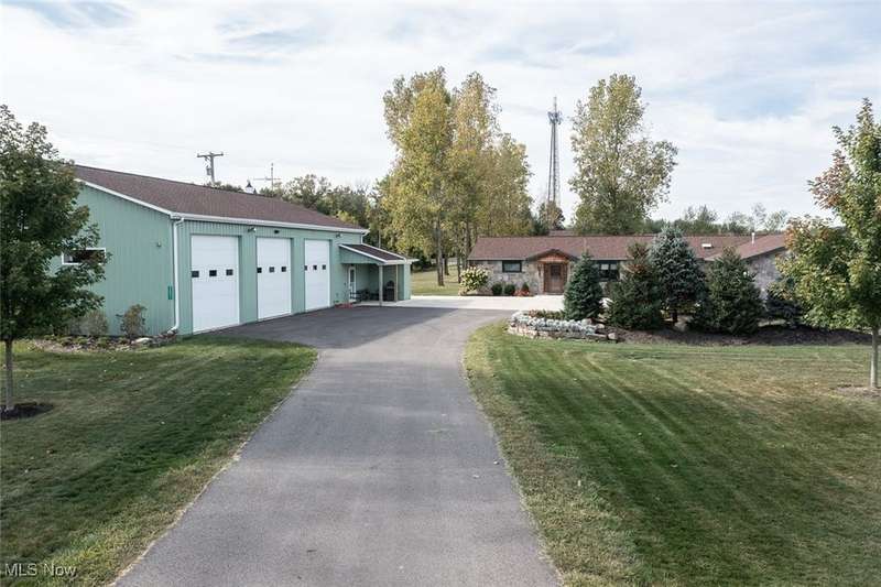 Modern Ranch Retreat on 4 Acres ? Welcome to your private rural oasis just 25 minutes from Cleveland Hopkins Airport. This custom-built 2-bedroom, 2.5-bath ranch (constructed in 2020) was thoughtfully designed for luxurious, functional, and accessible living. Inside, you'll find two spacious primary suites, each with its own ensuite bathroom featuring zero-entry showers for handicap accessibility. One suite includes a massive walk-in closet with a custom wood organization system?perfect for anyone seeking smart storage solutions. If you really need that 3rd bedroom or additional space it can easily be sectioned off.At the heart of the home lies a gourmet kitchen equipped with high-end appliances, including a Wolf range and Sub-Zero refrigerator. A large butcher block island offers additional prep space and seating, while the adjacent butler's pantry with a dedicated freezer adds convenience and storage.Expansive Andersen windows flood the open-concept living area with natural light and offer stunning views of the backyard and serene koi pond. Comfort is paramount with a hydronic radiant floor heating system throughout the house (and garage) and central air to keep things cool in summer. The 28' x 40' attached garage is a standout feature, boasting an epoxy floor, workspace, utility sink, and a bonus room ideal for an office, gym, craft room, or storage. Need more space? The incredible outbuilding is a dream for hobbyists or professionals?featuring radiant overhead heat, three oversized garage doors, room for a vehicle lift, and separate electrical service. A private room within the outbuilding adds flexibility for use as a workshop, office, or secure storage. This home was designed with aging in place, luxury, and livability in mind?combining modern comforts with natural beauty and space to breathe. One more bonus is the location of Carlisle Township. No RITA!