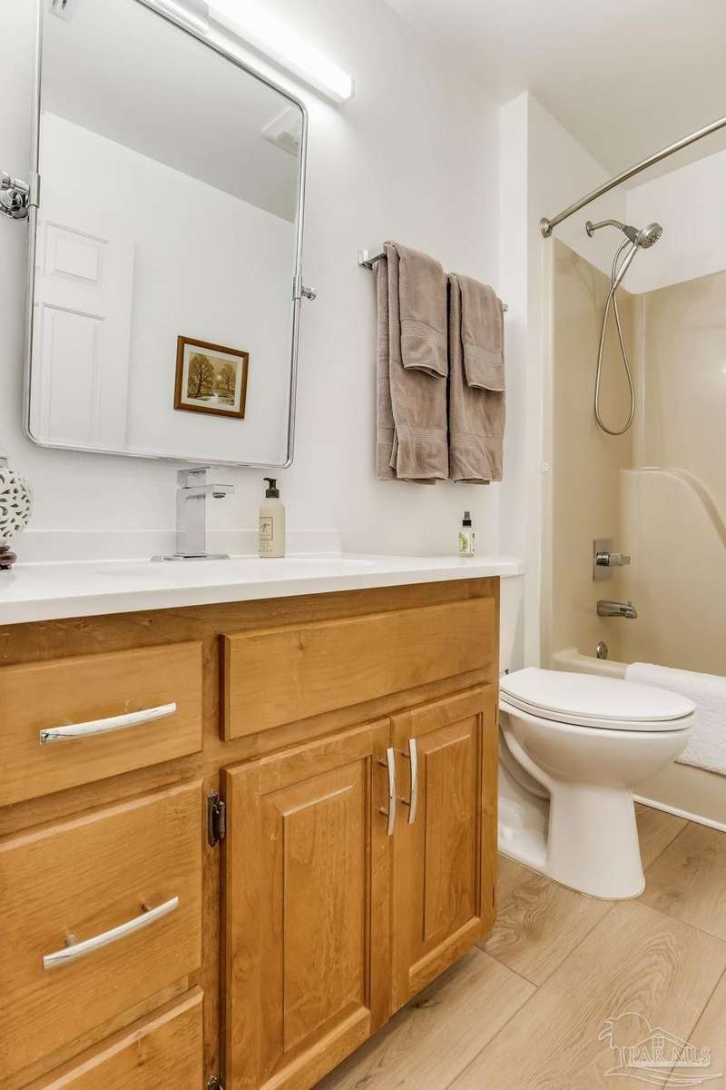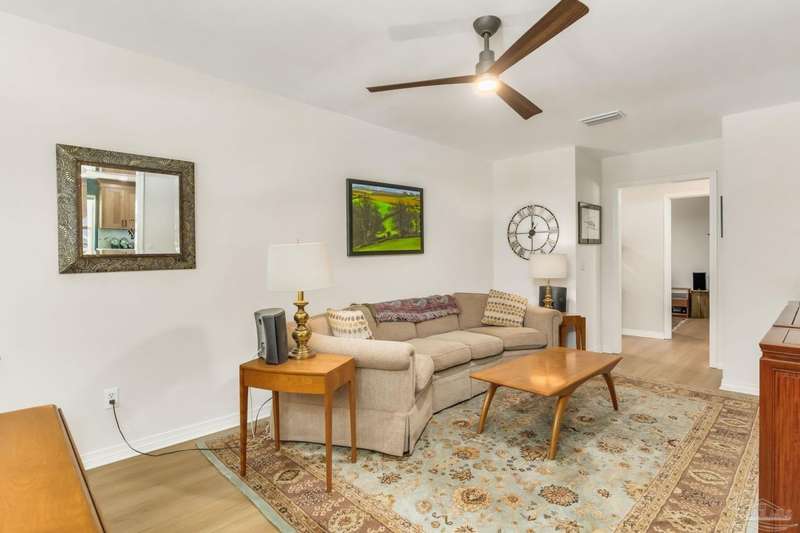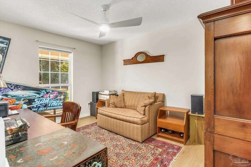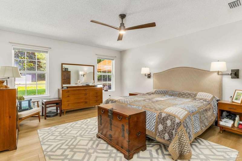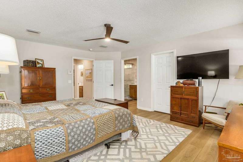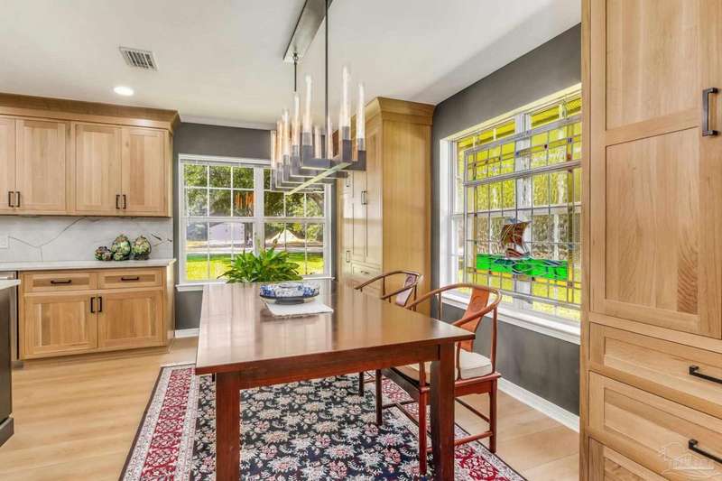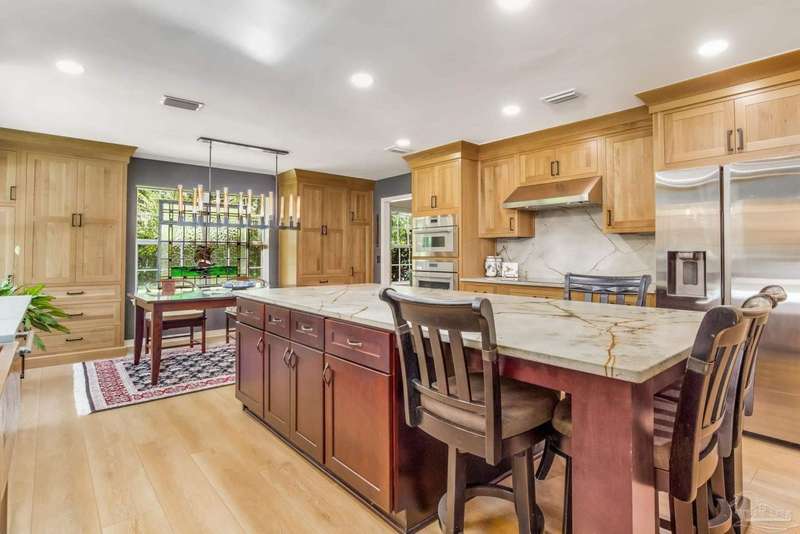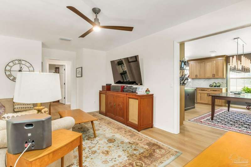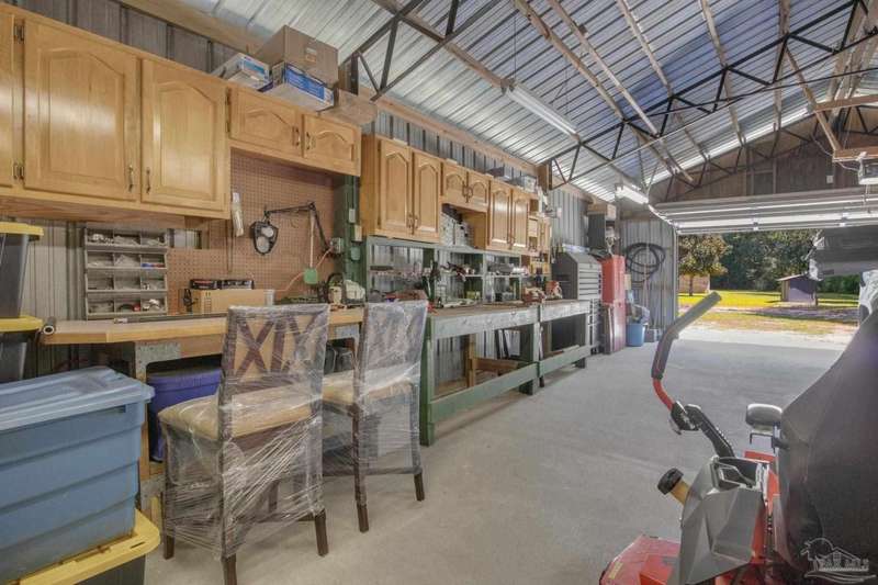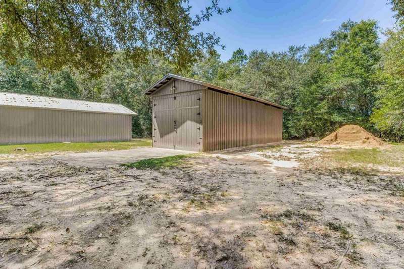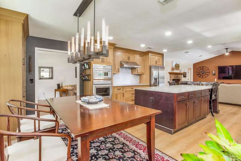 Well maintained and tastefully updated 3 bedroom 2 bath home situated on 4 acres! This brick home offers privacy with a large lot that is covered in mature landscaping that provides ample wildlife and space for outdoor activities. Inside, the home offers luxurious wood look flooring. The front den offers additional living or entertaining space. Making your way into the main living space provides vaulted ceilings, fireplace with brick hearth, modern lighting fixtures, and surround sound. The completely remodeled kitchen includes real wood cabinets, induction cooktop with stainless steel appliance package, double oven, recessed lighting, granite counter tops and spacious island with additional storage. The kitchen provides a multitude of seating options including breakfast bar and designated dining space. The home offers an office space or separate bedroom with 2 closets, and additional guest bedrooms. The spacious primary suite offers views of the expansive backyard, walk-in closet, fully tiled shower with glass surround and double vanity. Out back, the home offers a spacious open patio with retractable awning to provide great shade. The inground jacuzzi style pool offers relaxation. The backyard provides a well for the irrigation, a large oversized 2-car garage with workshop along with a completely enclosed RV garage with power and a junction box that could support 30amp. Additional features include full solar system with battery power backup installed in 2022, full home gutters, roof in 2019, HVAC in 2014 and so much more!