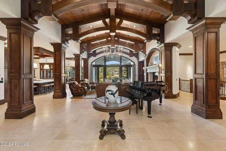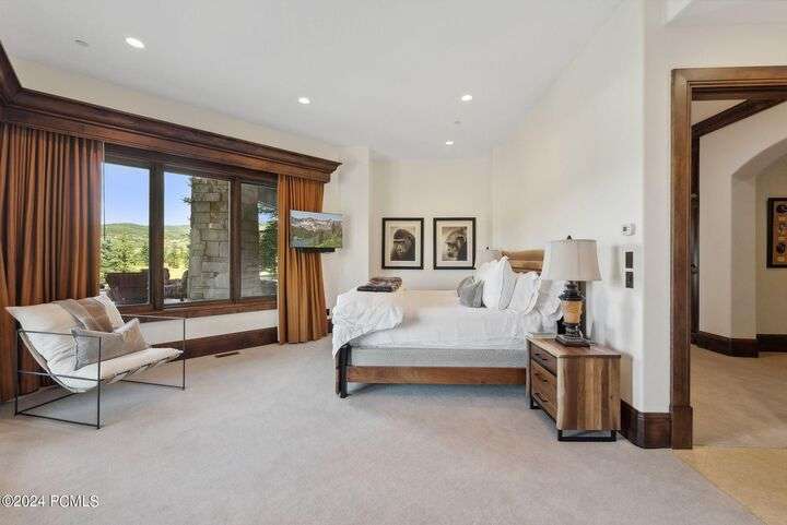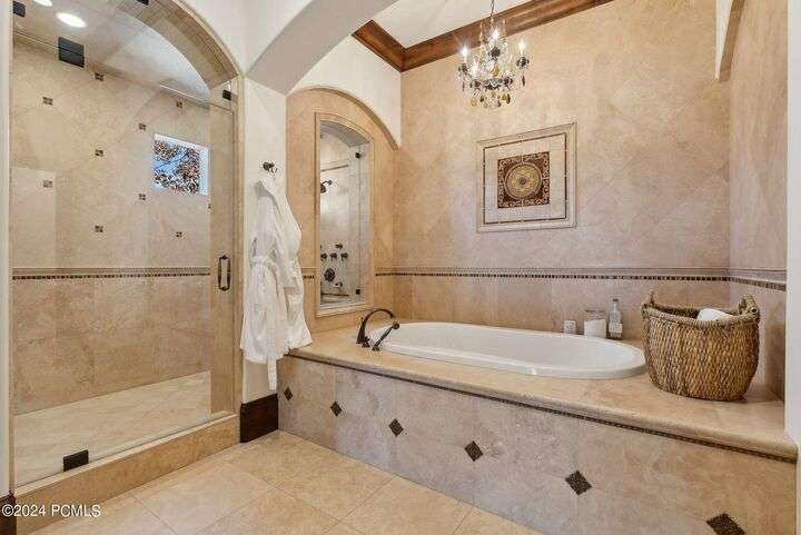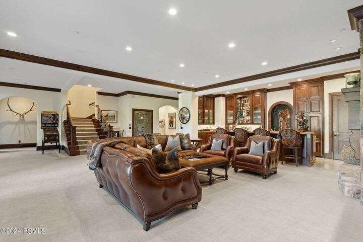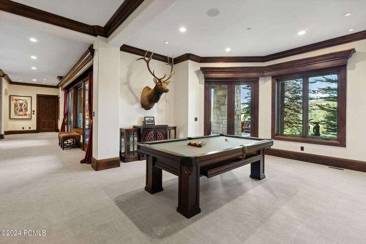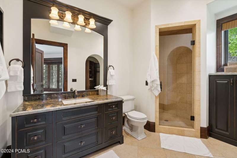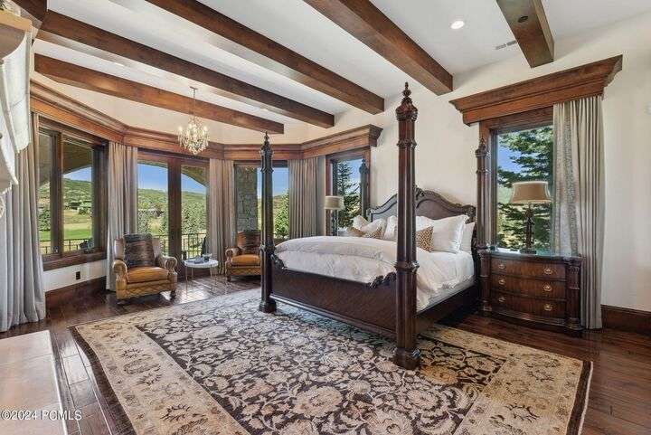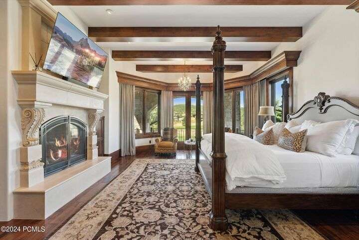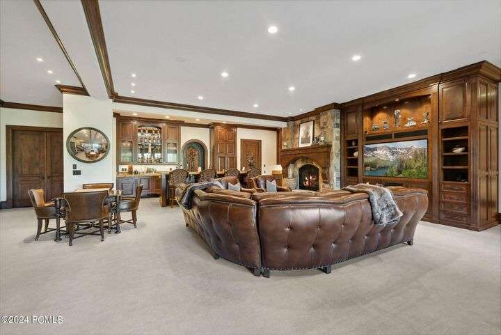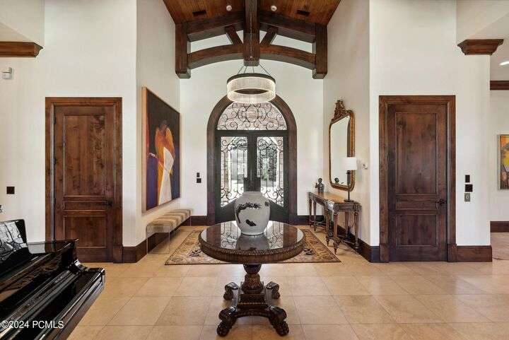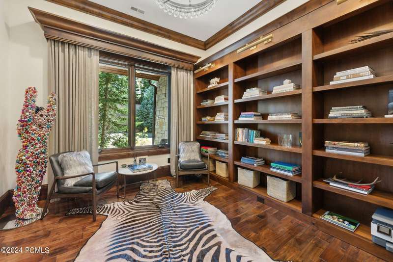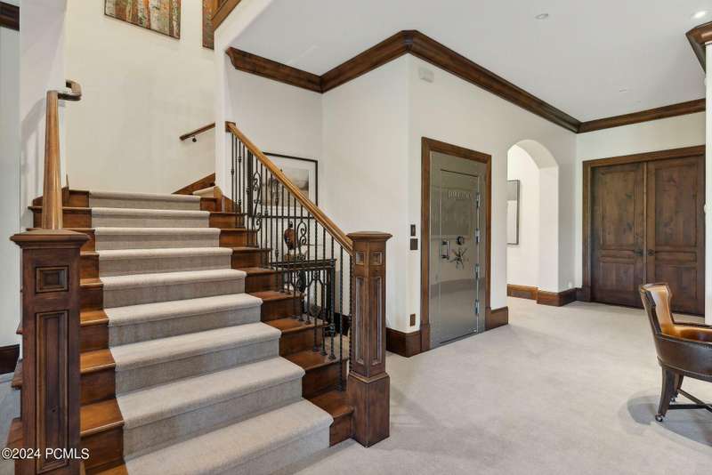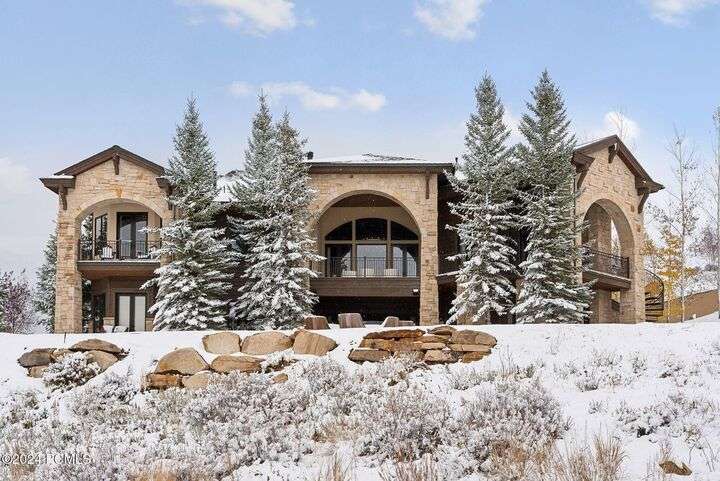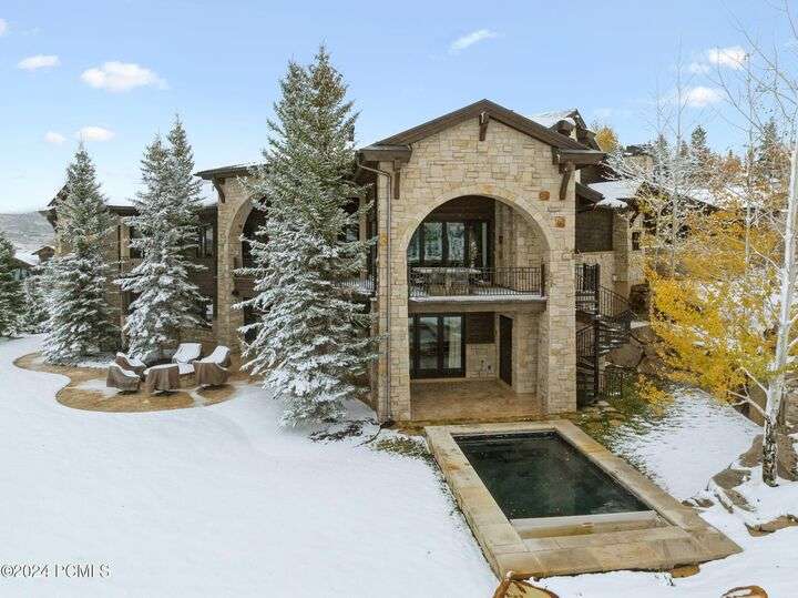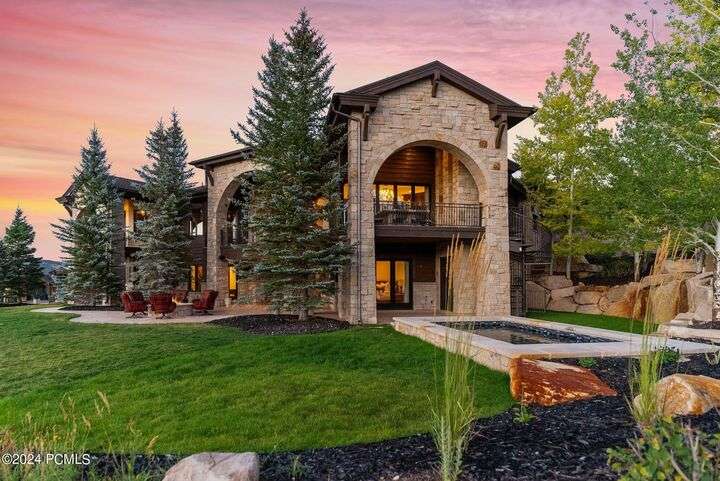 Timeless elegance meets remarkable comfort in this stunning custom residence within the exclusive, gated Glenwild community. Enhanced with luxurious upgrades in 2022, this property seamlessly blends established grandeur with modern refinement. Perched above the 6th fairway of Utah's #1-rated golf course, it boasts breathtaking ski resort and golf course views.The meticulously designed layout caters to both grand entertaining and intimate gatherings. The main level features expansive living areas with smooth alder wood beams, striking mantles, and dramatic vaulted ceilings. An enviable open kitchen with new marble slabs flows into a fully updated butler's pantry. Glass doors in the dining area blur the line between indoor luxury and outdoor splendor.The secluded northwest wing houses the primary bedroom suite, complete with a private deck, fireplace, large walk-in closet, and a spacious en-suite bathroom featuring a grand bathtub. An adjacent office offers access to a covered deck. A separate guest suite with its own fireplace and en-suite bathroom completes the main level, which also boasts an elegant library.The lower level, accessible by staircase or elevator, includes three additional private en-suite bedrooms and a potential fourth bedroom currently serving as a state-of-the-art workout room with a sauna. An expansive living room with a custom bar sets the stage for entertaining, while an all-brick wine cellar, movie theater, and new gun vault add to the home's amenities.Outdoor living reaches perfection with stone archways framing exquisite gathering areas and custom fire pits, offering golf course views through mature pines and aspens. A water feature and sculpted retaining walls line the heated brick-paved drive, complemented by updated landscaping. The crowning touch is a newly added custom outdoor spa with dramatic ski resort views.This rare opportunity in Glenwild, the only gated golf course community in the Park City school district awaits you.