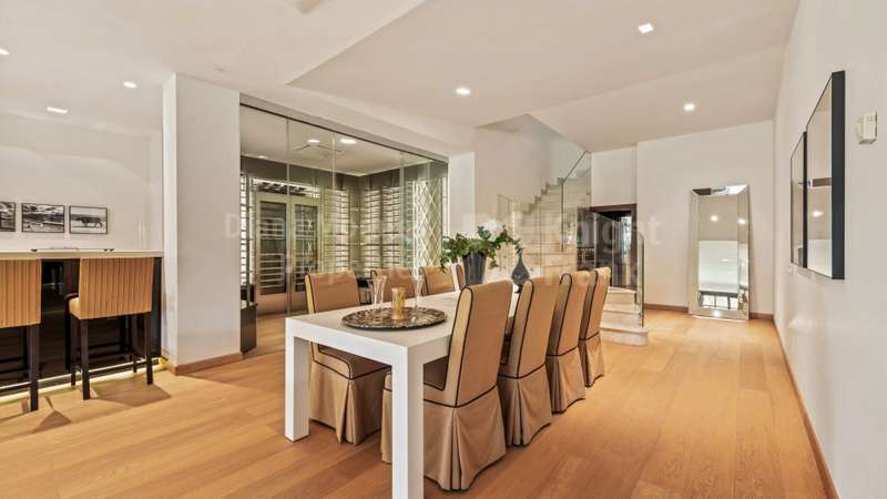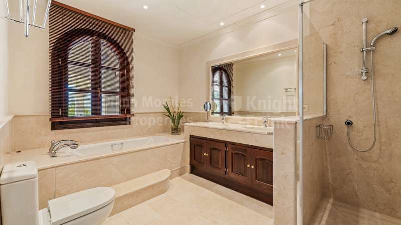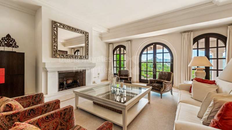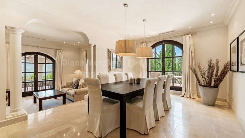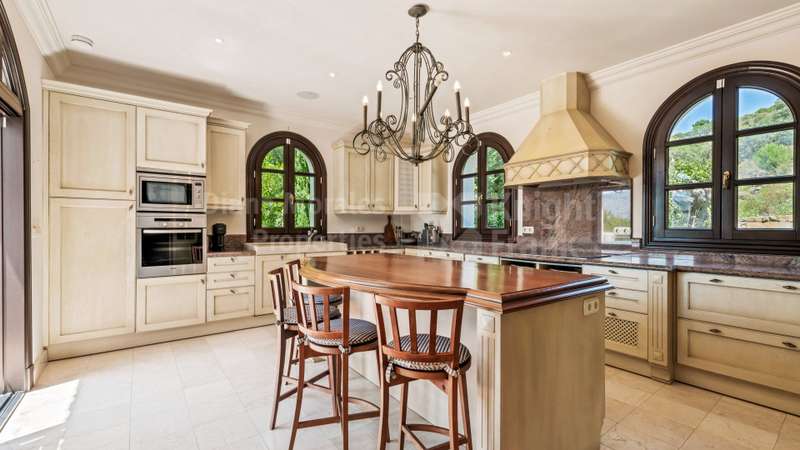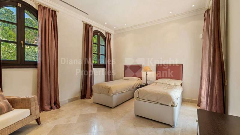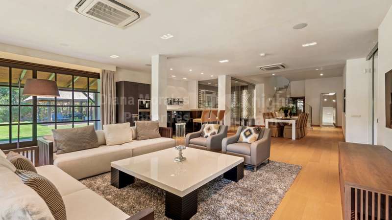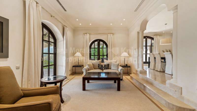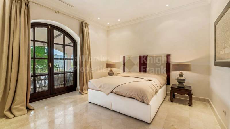 Villa El Magnolio with spectacular mountain views, is situated in the peaceful location of La Zagaleta Golf & Country Club, an exclusive and secure residential estate with two 18-hole golf courses, equestrian centre, heliport and a variety of sporting facilities as well as red carpet services for its residents. Access to the estate is guarded 24 hours a day. The villa’s imposing entrance leads to an elegant foyer with a sweeping staircase, ascending to the upper floor which hosts the spacious master bedroom featuring a sitting area, a dressing room, a study, a marble bathroom and a private terrace to enjoy the panoramic views. On the main level there is a cosy and comfortable lounge warmed by a fireplace, a TV room, an adjoining dining area, an elegant fully equipped kitchen and 3 bedrooms en suite, all with outside wrap-around terraces and picturesque far reaching mountain views. Downstairs offers really amazing entertainment area with direct acces to the garden, with a h