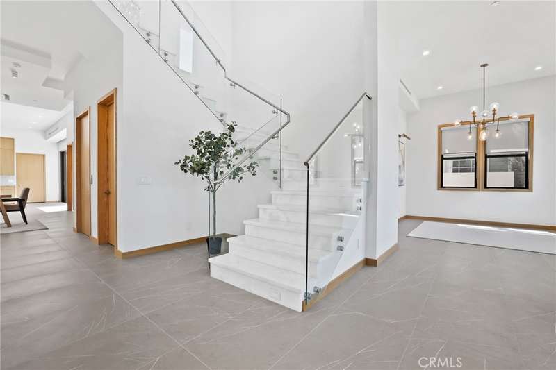 A dramatic 5' pivot entry door and soaring 12' volume ceilings set the tone for the elegant, light-filled interior. The floor plan features four bedrooms, all ensuite, including two primary suites--one conveniently located on the ground floor and a second upstairs. The upstairs primary suite is a luxurious retreat, showcasing a spa-inspired bathroom with an exquisite Italian marble shower, creating a serene and sophisticated escape.