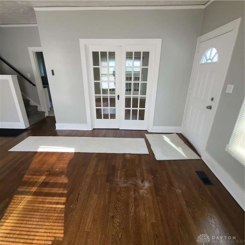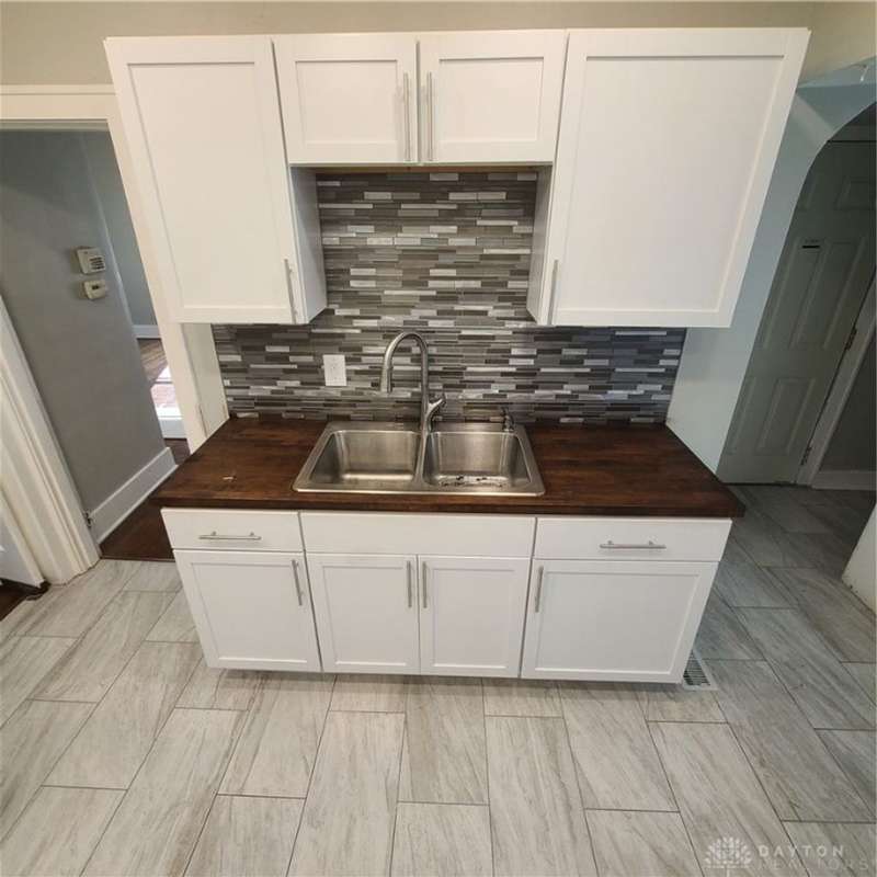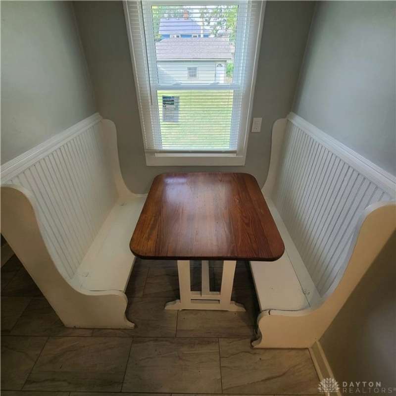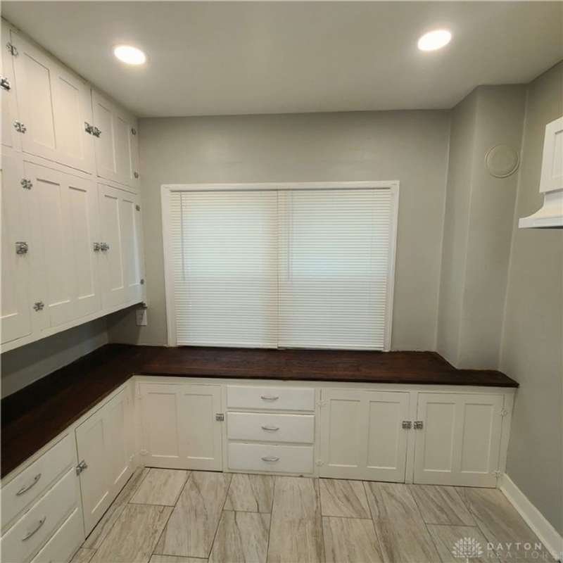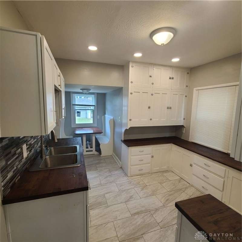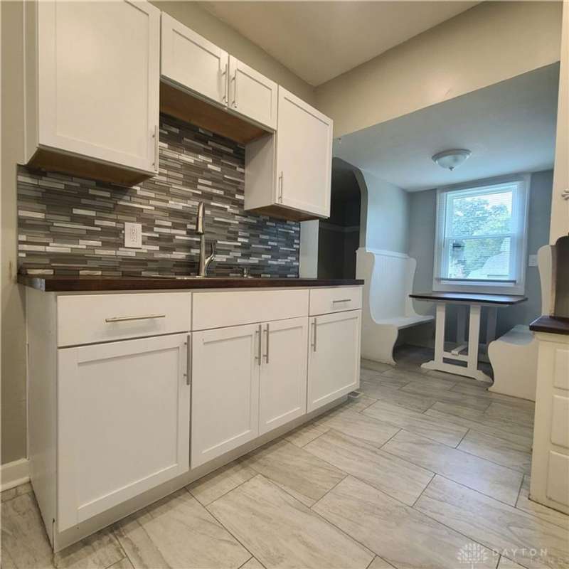 This 3-bedroom, 1-bath, 2-story home has been completely remodeled, blending modern updates with timeless character. The bright living room is centered around a bold painted black brick fireplace (decorative) and accented by original built-in glass-front bookcases. French doors open to a formal dining room, offering a versatile space for entertaining or even a home office. The kitchen has been beautifully updated with brand-new cabinetry, butcher block counters, a sleek tile backsplash, and a cozy breakfast nook with built-in bench seating. Upstairs, all 3 bedrooms have been refreshed with neutral finishes, providing comfortable private retreats. The basement has been waterproofed and features glass block windows, offering a semi-finished area with plenty of potential for storage, recreation, or expansion.Outside, the home features a welcoming covered front porch, a detached garage for parking and storage, and an open yard that adds usable outdoor space.