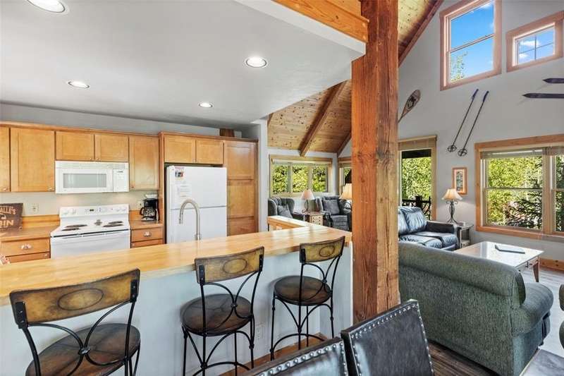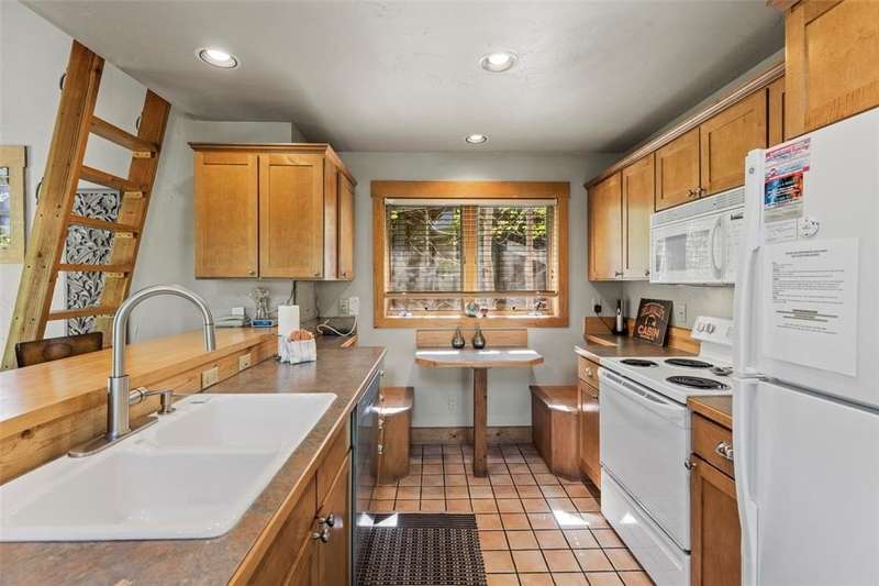 Tucked away in a peaceful, wooded setting, this well-maintained 3-bedroom home with an additional loft offers the perfect blend of privacy and convenience. Located just a stone's throw from the national forest, scenic trails, rec path, and nearby bus stop. The living area is warm and inviting, with vaulted ceilings and ample natural lighting. The loft area acts a versatile flex space for a home office, sleeping area, or den. Additional features include a one-car detached garage, community hot tub, and well managed exterior and common areas. Don't miss this rare opportunity to own a home that has been meticulously maintained by the original owners.