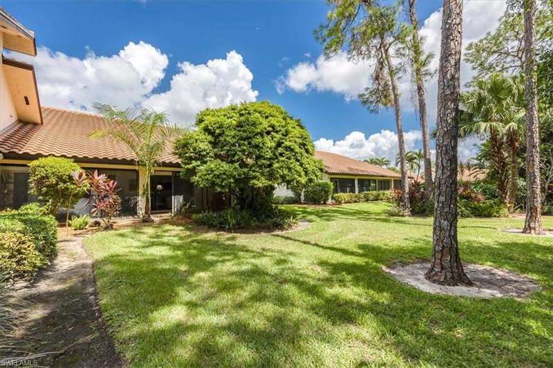 Experience privacy & tranquility at the Villas at Kings Lake! This spacious 2-bedroom, 2-bath villa offers a thoughtfully designed split floor plan with vaulted ceilings and a 2 car garage! Brand new AC and stainless steel dishwasher have just been installed! The light and bright eat-in kitchen with a convenient pass-through to the dining area-perfect for entertaining. Enjoy multiple living spaces including a welcoming family room, expansive Florida room, and a wet bar, all accented by charming Mexican tile floors. The primary suite opens to a private courtyard patio, creating your own peaceful retreat. Spacious guest quarters with ample storage space and full bathroom. Step outside to enjoy lovely preserve views, beautifully landscaped grounds, and community amenities including a sparkling pool and nearby tennis court. Kings Lake Square is just next door, offering the ultimate convenience with Starbucks, Publix, shops, restaurants, a fitness center, and more right at your fingertips.