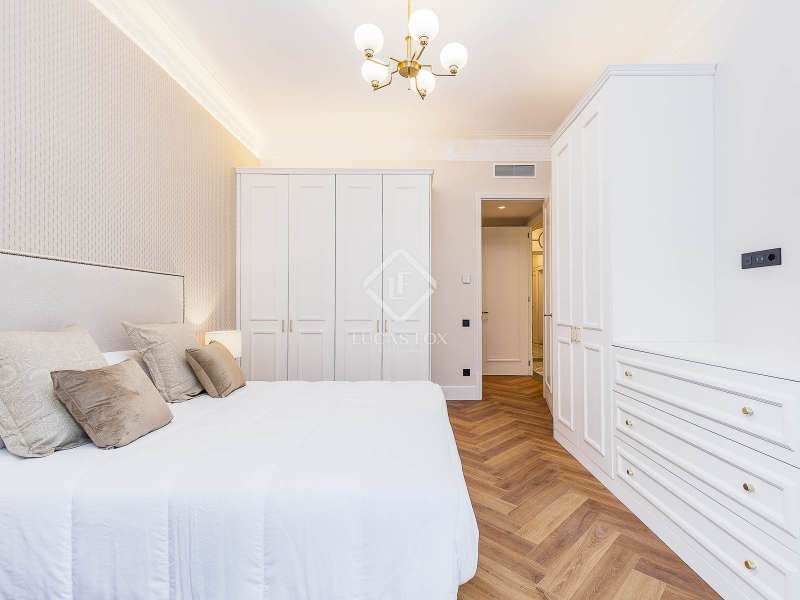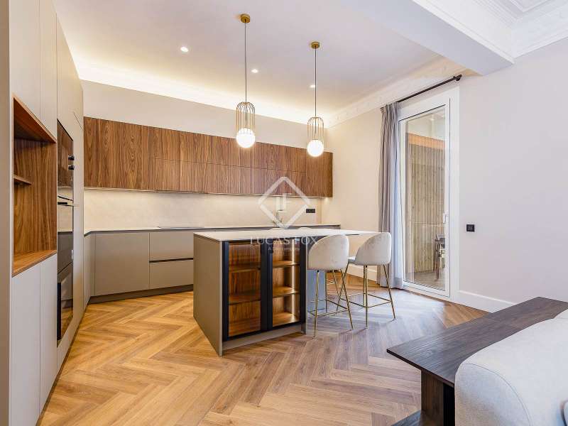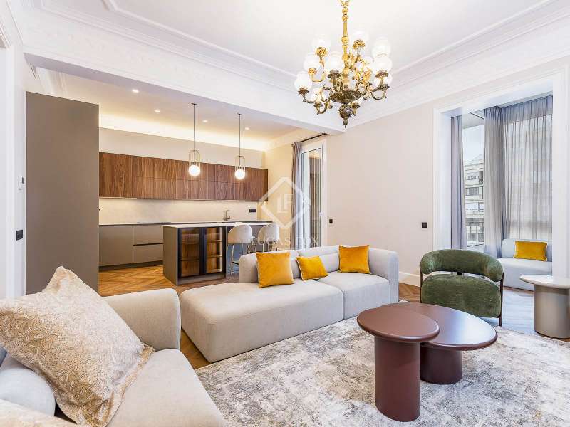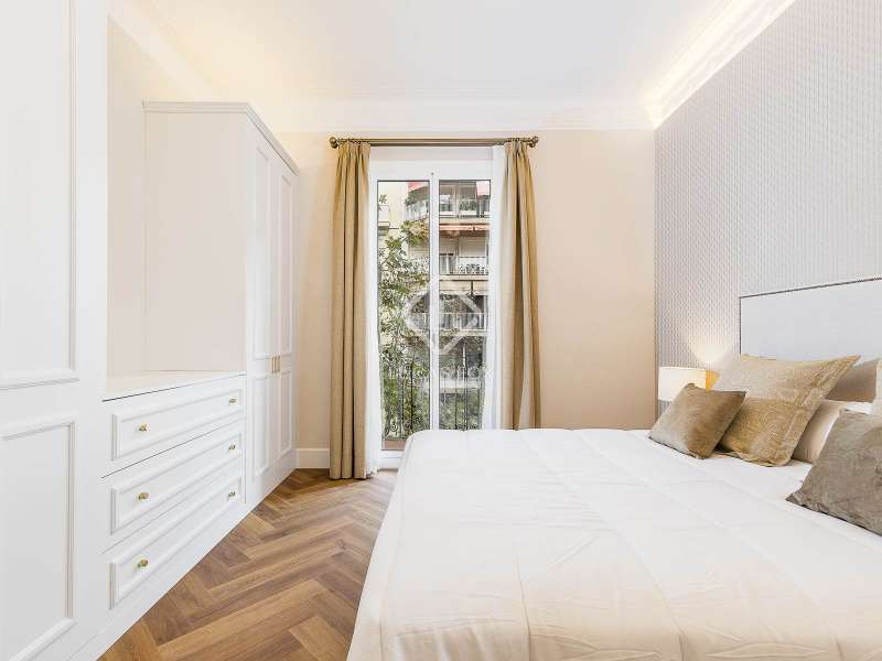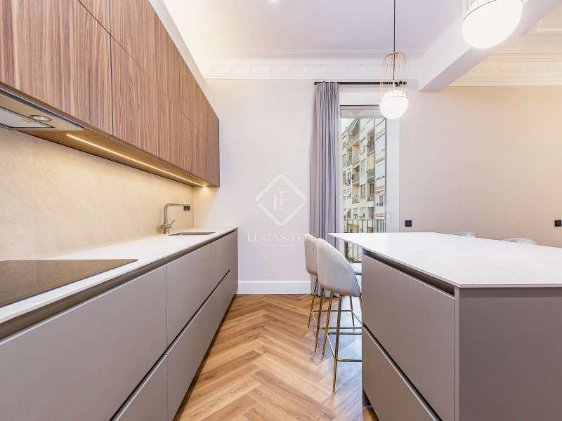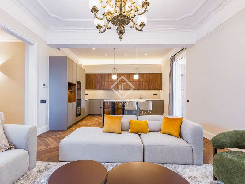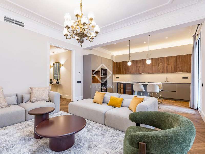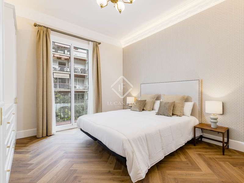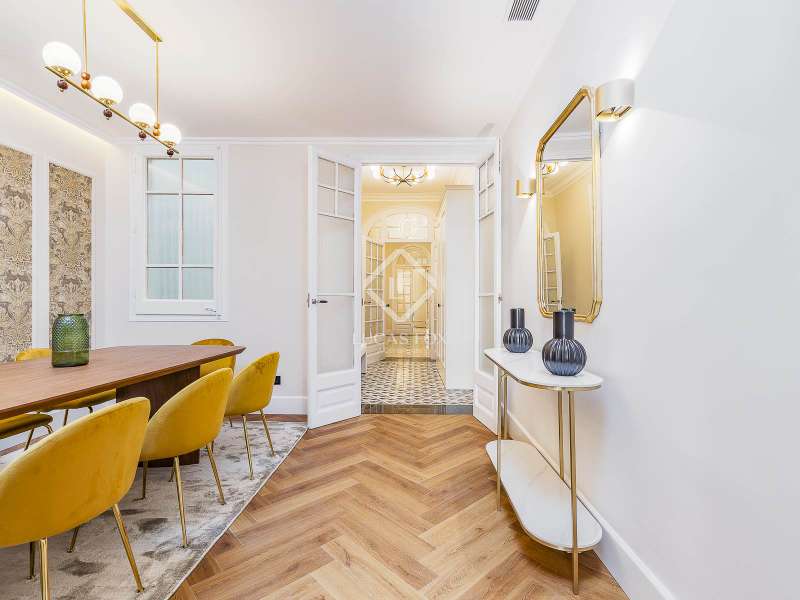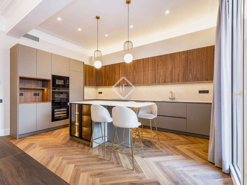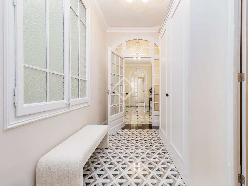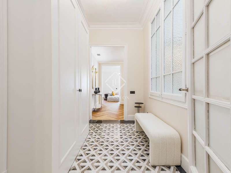 Set within a stunning, stately period building on Carrer Muntaner, just steps from Avinguda Diagonal, this exceptional residence is undergoing a full renovation with completion scheduled for September. The project preserves distinctive original features such as high ceilings with ornate moldings and restored wooden shutters, while introducing contemporary design and top-quality materials throughout. Upon entering, a spacious foyer leads into an impressive open-concept living area of nearly 60 m², where the living room, dining area, and kitchen with central island seamlessly connect in a bright, flowing layout. Off the living space, a stylish glass-enclosed gallery adds warmth and versatility—an ideal spot for reading, relaxing, or enjoying a morning coffee. Adjacent to this space, an exterior balcony of over 5 m² offers open views and a private outdoor corner to enjoy the fresh air. The apartment features three exterior double bedrooms, two of which have en-suite bathrooms and custom-built wardrobes. The third bedroom is served by a full bathroom located just opposite, which also functions as a guest restroom. Additional highlights include a generous walk-in closet, a practical laundry area, interior storage room, and cleverly designed hallways with integrated storage solutions. A rare opportunity to move into a brand-new home that blends the elegance of classical architecture with the comfort and style of modern living, in the heart of Barcelona’s sought-after Eixample Esquerra district—surrounded by shops, services, and excellent transport connections.