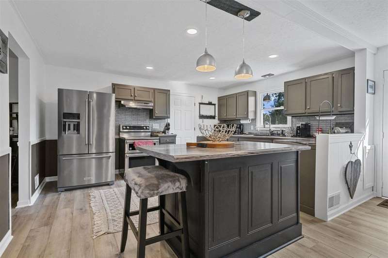 You DO NOT WANT TO MISS THIS ONE! This 3-bedroom, 2-bath ranch blends modern updates with bold design in one of the most convenient locations in town???right in Eastland Park and within the city school district. Step inside to find two spacious living areas, a large kitchen with island and KitchenAid refrigerator and double convection ovens/range, and a dining room built for entertaining. Both bathrooms were fully renovated with classic white subway tile and striking black grout, gorgeous tile flooring, new cabinets/countertops paired with sleek anti-fog LED mirrors for a contemporary edge. The primary suite features a custom closet system, while the laundry rooms offer exceptional storage solutions and even a second custom system. Throughout the home, you???ll find new LVP flooring and eye-catching custom barn doors that make a statement. Out back, enjoy the oversized 32??? x 23??? deck overlooking a large, flat, fully fenced backyard???perfect for gatherings or quiet evenings outdoors. The garage has been transformed into an incredible man-cave, yet remains fully functional as a garage when needed. With a new roof and windows in recent years, this home is as practical as it is stylish. If you???re looking for a home that???s central, updated, and just a little bit edgy???this is the one.