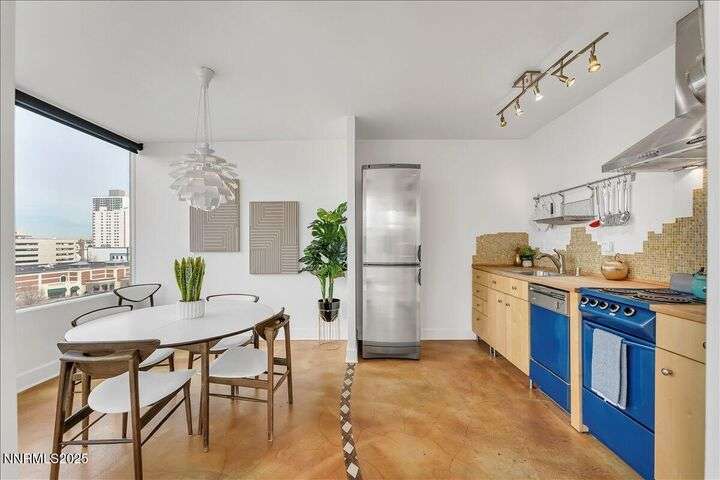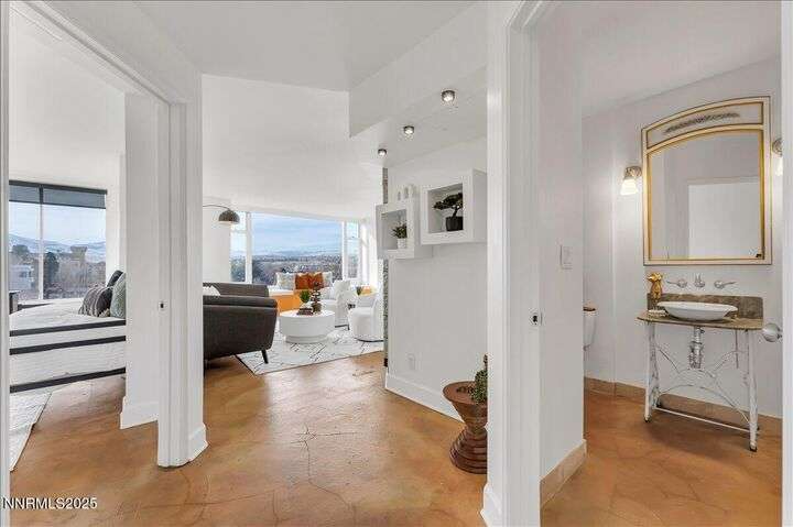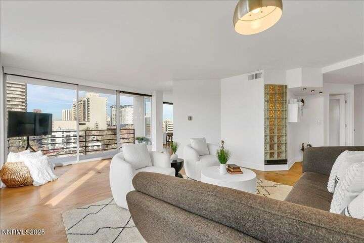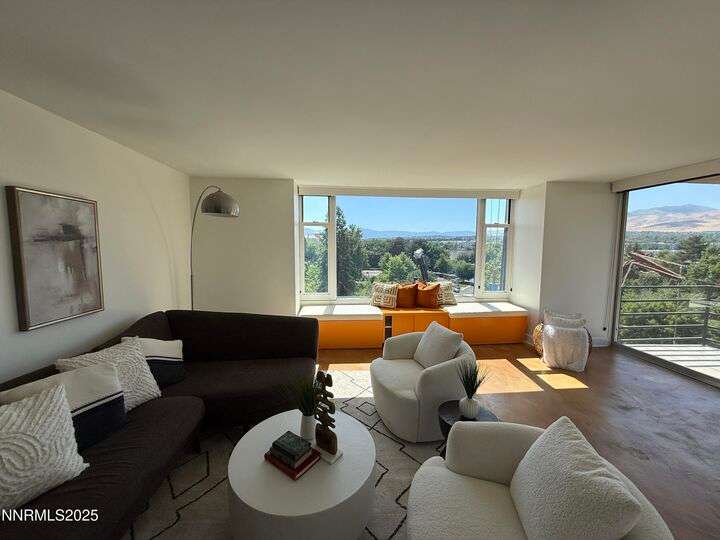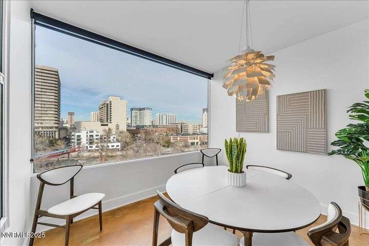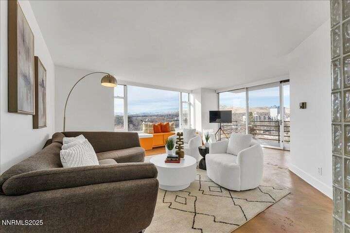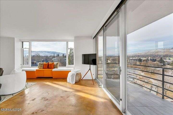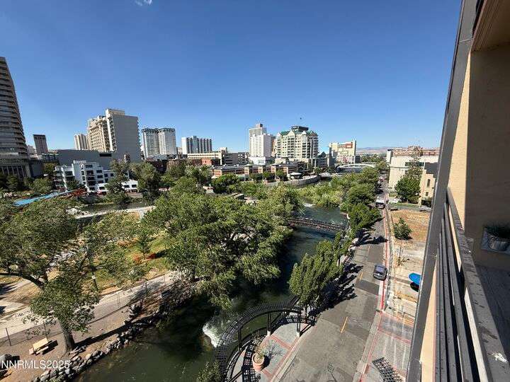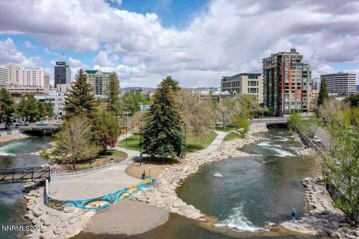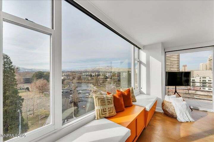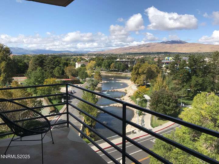 Luxury Downtown Living with Unmatched Mountain & Riverfront Views! Welcome to your urban retreat along the Truckee River — perfectly positioned in the heart of downtown Reno, just steps from Midtown. This 8th-floor unit offers breathtaking, unobstructed views of the Sierra Nevada mountains and river from your private balcony. Soaring windows fill the space with natural light, creating an open, modern vibe throughout. The upgraded kitchen features modern cabinetry, stunning backsplash, and stainless appliances—perfect for entertaining or relaxing at home. The unique concrete flooring adds a stylish, industrial touch that complements the urban setting. The spacious primary suite includes a private sauna, walk-in closet, and a spa-like ensuite featuring custom rock tiling, live-edge marble countertops, and a Japanese soaking tub—truly a one-of-a-kind retreat. Enjoy everything Reno has to offer right outside your door: Wingfield Park, the Riverwalk District, Midtown shops & dining, the Aces Ballpark, Nevada Museum of Art, Pioneer Center, and more — all within walking distance. HOA dues cover nearly all utilities — including heat, A/C, water, sewer, trash, and more — offering true lock-and-leave convenience. Furniture negotiable. Agents: Please be sure to read the Private remarks