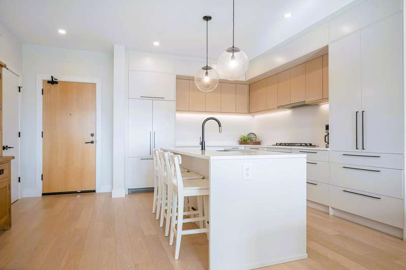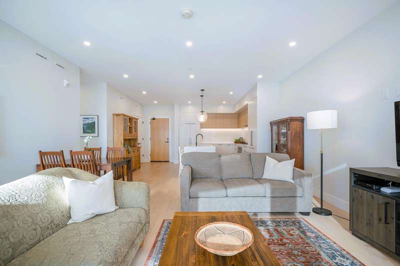 Live at Legacy on Park Ave! Langley City’s new hub for live-well lifestyles. This nearly 1,600 sq ft unit rises with 9 ft ceilings and wall-to-wall windows that flood every room with daylight. At its heart, an entertainer’s kitchen with Fisher & Paykel built-ins, Caesarstone counters, wide-plank oak floors, all complemented by modern finishes throughout. A/C, 3 generous bedrooms, 2.5 style baths, and a storage pantry big enough for strollers or Costco hauls. Slide outside to an oversized, curved deck - your private sky lounge, complete with a gas-ready for BBQs and heaters. Building perks you’ll enjoy include a concierge, fitness center, Grand Lounge, and an outdoor patio for weekend hangouts. Skip the car! Cafés, restaurants, shopping, Douglas Park, Timm’s Rec Centre are all an easy walk.