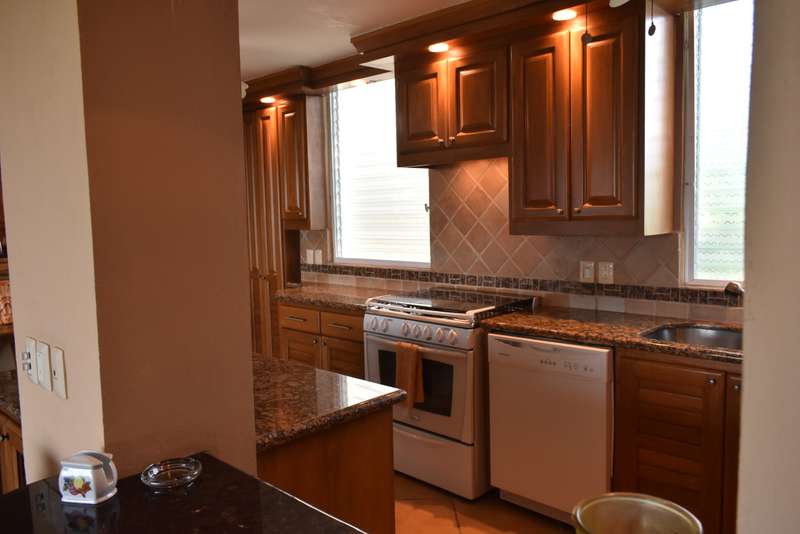 La amplia sala, tambien acondicionada con aire acondicionado, brinda un ambiente fresco y agradable para tus momentos de descanso. La cocina integral, con una elegante cubierta de granito, es el espacio ideal para los amantes de la gastronomia, mientras que el comedor ofrece el lugar perfecto para disfrutar de gratos momentos en familia.