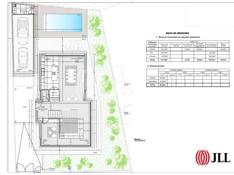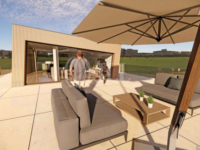 Moradia T3+2, com 385 m² de área bruta de construção, 60 m² de varandas, terraço panorâmico de 132 m², jardim, piscina de sal e dois lugares de garagem, em Miramar - Arcozelo, Vila Nova de Gaia. A moradia, de linhas contemporâneas, distribuída por três pisos, apresenta acabamentos de elevada qualidade e tecnologia integrada. No piso de entrada, encontra-se o hall, uma casa de banho social, cozinha em open space, com ilha, totalmente equipada com eletrodomésticos Bosch/Teka, sala de jantar, sala de estar rebaixada com lareira de bioetanol, escritório e acesso ao jardim. O piso superior é dedicado à zona privada e dispõe de uma master suite com closet, duas suites adicionais e varanda panorâmica com vista mar. O piso recuado, passível de utilização independente, conta com pré instalação de cozinha em open space, sala de estar, casa de banho social e acesso a um terraço/solário com vista de mar. A zona exterior contempla garagem fechada para duas viaturas, zona técnica e lavandaria, estacionamento exterior, jardim privativo, alpendre e piscina de sal com 6,5 m x 3 m. Iluminação exterior projetada pela Beneito Faure, pavimentos em travertino e fachadas com revestimento térmico Weber Therm e madeira ThermoWood da Lunawood reforçam o cuidado estético e funcional. Equipamentos adicionais incluem estores elétricos, domótica integrada, sistema de videovigilância e alarme Securitas, climatização completa com ar condicionado por conduta Samsung e bomba de calor. Conclusão de obra prevista para Janeiro de 2026. Situada a apenas 300 metros da Praia da Areia Branca e a 500 metros do campo de golfe, oferece acesso rápido ao centro de Espinho (7 km), Porto (15 km) e a 25 minutos driving distance do Aeroporto Francisco Sá Carneiro. Categoria Energética: B #ref:92008