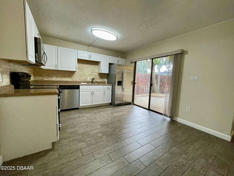 Just two blocks from the beach! This charming New Smyrna Beach townhome offers the perfect blend of comfort and coastal living. The spacious open-concept downstairs features stylish wood-look tile flooring, a modern kitchen with sleek cabinetry, Whirlpool appliances, and a convenient half bath.Upstairs, you'll find two bedrooms, including a primary suite with a large walk-in closet complete with organizers and an en-suite bath. The second bedroom has easy access to a full bath and a linen closet for extra storage. Enjoy the ocean breeze from your private fenced courtyard or relax on the upstairs balcony, accessible from both bedrooms.Additional highlights include ample storage throughout and a small outdoor shed for your beach gear. Don't miss this opportunity to live steps from the sand in a home that combines style, functionality, and location! All residents will be enrolled in Benefits package details upon application.