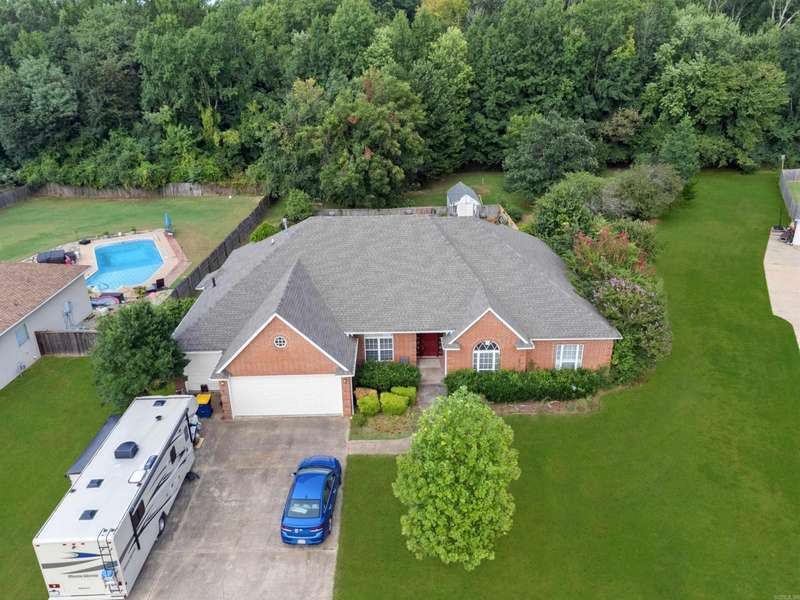Nice one owner custom-built home in the desirable Shiloh Subdivision offering a great location, lots of space, and privacy. This 3 bedroom, 2 1/2 bath home sits on almost a full acre lot with a fenced in back yard and private outdoor setting at the back of the property. It has a two-car garage, with an additional side garage, and a storage building in the back. The home features two living areas, formal and kitchen dining areas, a sunroom, and a home office with French doors and a vaulted ceiling. A new roof was installed in 2023. The kitchen has stainless appliances and all new cabinets. All appliances stay with the home. The home includes two water heaters and a Generac 20kw whole home generator. This home has lots to offer. Home is being sold AS IS. Agents see remarks