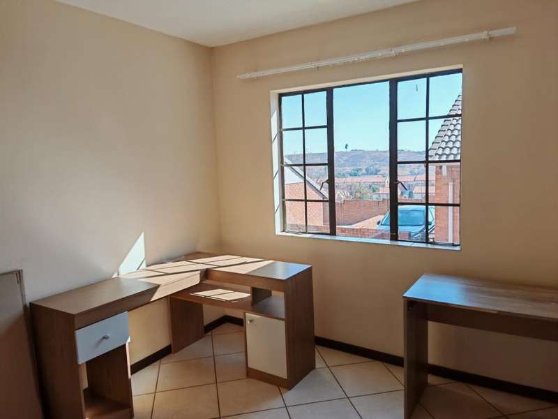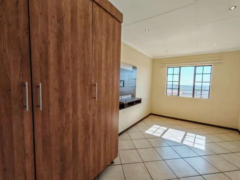 Priced to sell and move in ready! This 4 bedroom doubly storey unit in a complex within a very secure Lefestyle Estate, is ready for the next proud owner. Downstairs is a spacious open plan living and dining area. The open plan kitchen with its own private scullery and ample cupboard space overlooks the living areas. The guest bedroom with a toilet and basin, could also be utilised as an office, is conveniently situated downstairs. Upstairs are three sunny bedrooms. Two bedrooms are serviced by a full bathroom. The master bedroom has ample cupboard space and boasts an en-suite full bathroom. The living areas open out to an under cover patio, overlooking the private and pet friendly wrap around garden. The double garage and an allocated parking space, round off this lovely property. Mooikloof Ridge Estate offers exceptional Security with 24 Hour access control and visible security patrols. The entertainment area offers, swimming pools, a tennis court, a squash court, basket ball area, kiddies play areas, a cricket pitch, walking trails and huge well maintained garden and lawn areas a well as braai areas. The Mooikloof Village Shopping Centre across the road from the estate, conveniently offers a Filling Station, Spar and Tops, Pharmacy, Restaurants, Hardware Shop etc. In close proximity of numerous major shopping Malls (Woodlands Boulevard), Garsfontein Road, De Villa Bois Str, Solomon Mahlangu, Pretoria East Hospital, Popular Schools (Woodhill College, Maragon Olympus, Garsfontein Laerskool and Garsfontein Ho?½rskool. Don't miss out and contact me for a viewing!