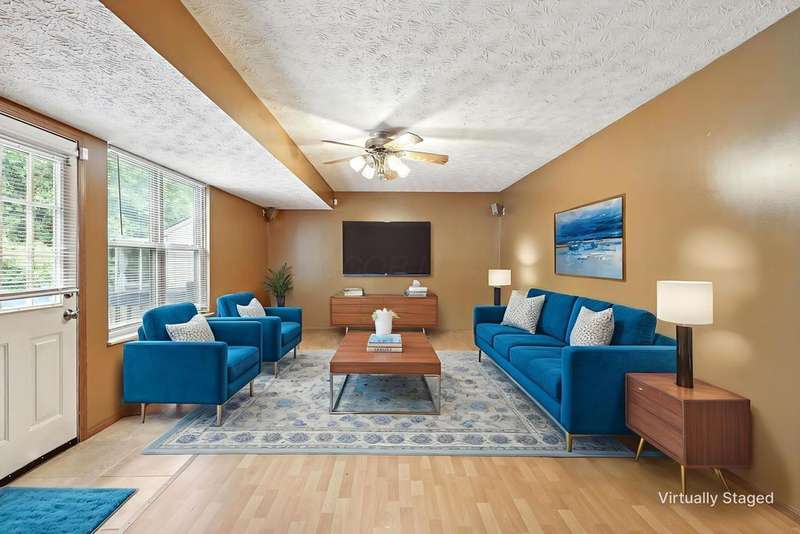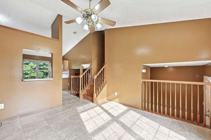 Remarkable Five Level Home in Noble Village with Westerville Schools! Large floor plan with over 2000 square feet of living space, situated on nice lot that backs to mature trees, vaulted second floor flex room ( dining or additional living room ), first floor living room, vaulted kitchen with stainless steel appliances, big primary bedroom with walk in closet, full bath and adjacent upstairs laundry, finished lower level rec room and additional storage room.