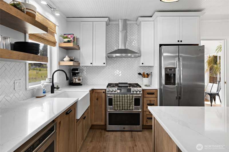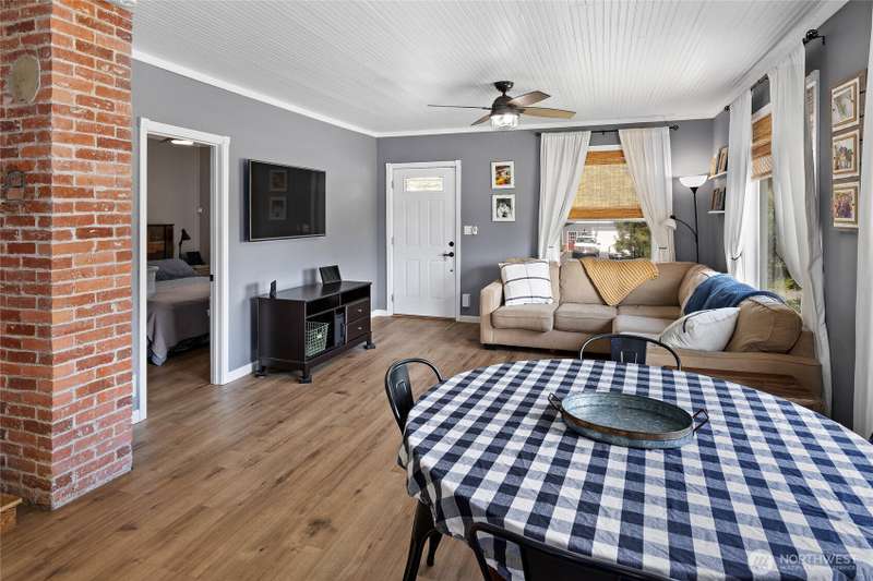 Charming 1900s Roslyn home, thoughtfully restored over the years! This 3 bed, 3 bath gem sits on a level 9,000+ SF corner lot with a fully fenced yard, garage, and off-street parking. Main floor features a spacious living area, beautifully remodeled kitchen, one large bedroom, and full bath. Enjoy new LVP flooring, original beadboard ceilings, and exposed brick, this home has great character! Upstairs offers a loft (potential 4th bedroom), full bath with wood counters, and 1 bedroom. The lower level has ADU potential with a rec room & wood stove, + a primary bath featuring a jetted tub. Ideal for outdoor living, gardening, or even chickens—comfort and character in the heart of small town Roslyn!