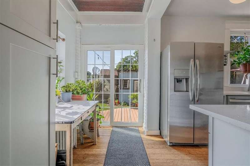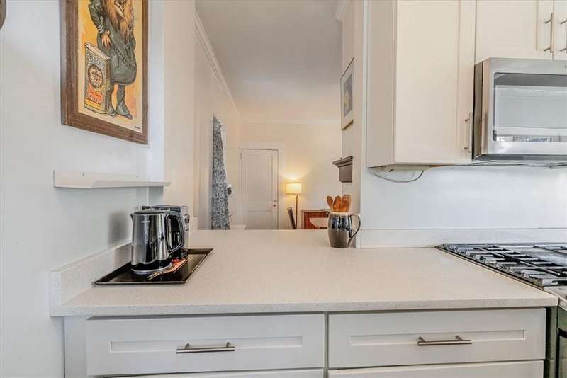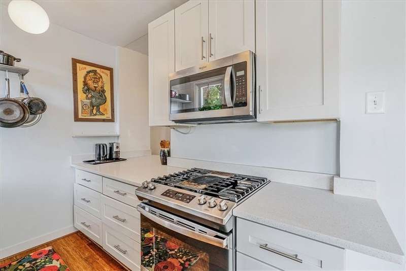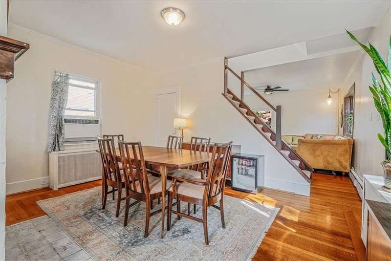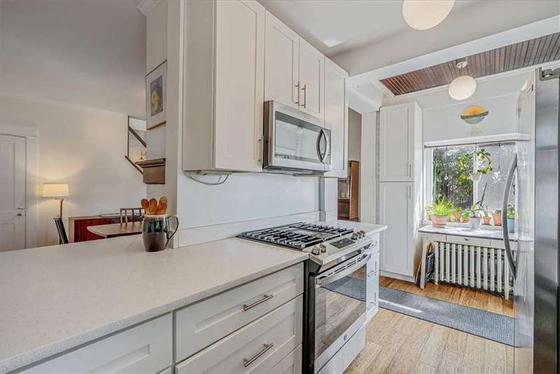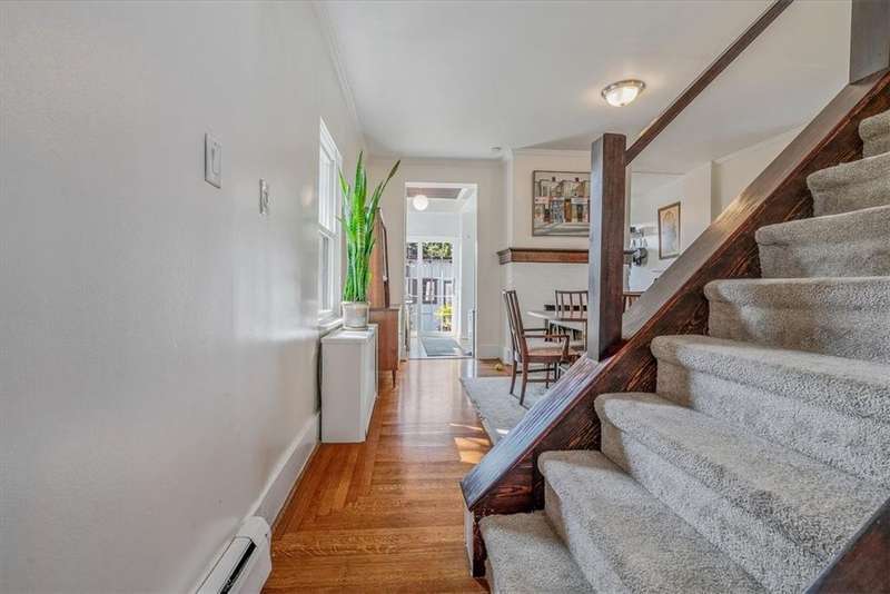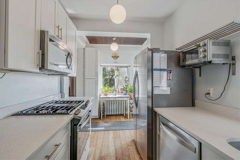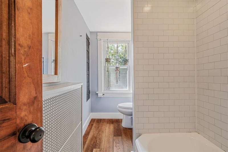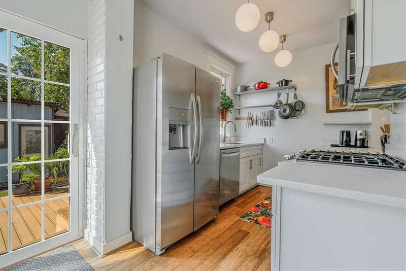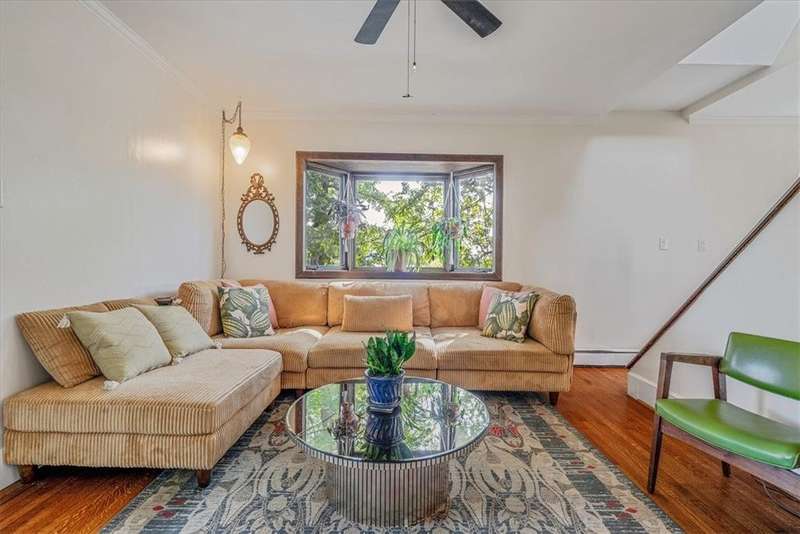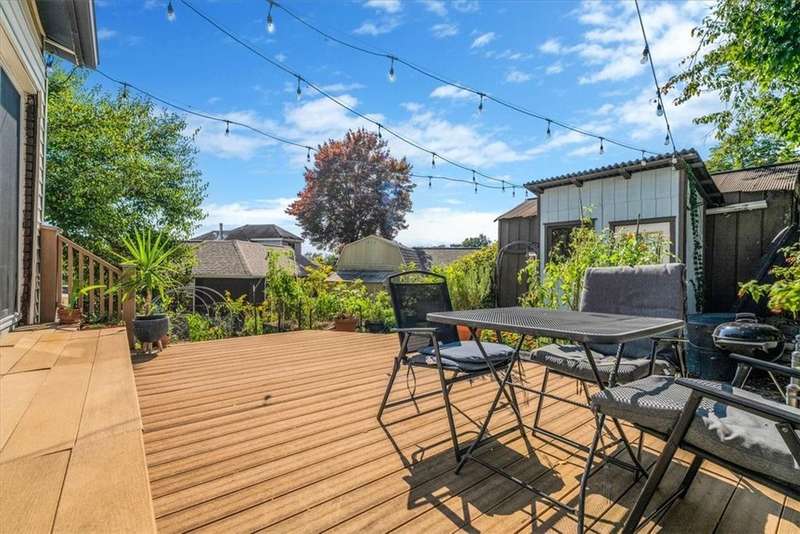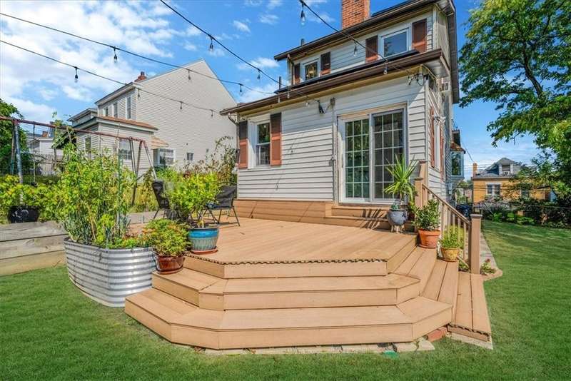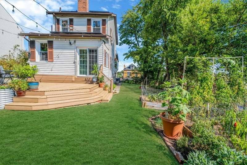 Welcoming and full of charm, this sweet 2-bedroom home offers both comfort and convenience. Step onto the inviting front porch, the perfect spot to relax with coffee, read a book, or greet friends. Sunshine pours in through wide sliding doors, filling the living space with natural light and warmth. you'll find hardwood floors throughout & an updated kitchen with an open counter to the dining room?ideal for casual seating for 2 or displaying food when entertaining. Out back, a composite deck overlooks a large garden planted with hardy vegetables and flowers, with a shed for storage and a spacious side yard that adds both privacy and room to enjoy the outdoors. Conveniently located close to grocery stores, public transportation, and nearby universities, this home makes everyday living simple and stress-free. Bonus: a full bath in the basement and Solar Panels!!. Compact, stylish, and move-in ready, it's the perfect retreat above the street. Showings start Thrus. 9/25