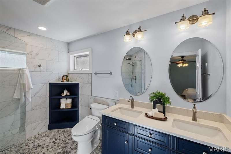 If you’ve been looking for a home that checks all the boxes, this one is it! In a super convenient location... minutes from great restaurants, shopping, entertainment, Shrewsbury and Blackburn Park, not to mention all the fabulous offerings St Louis provides...this beautiful 3-Bedroom (with 2 additional bedrooms in lower level) 3-Full Bathroom home has tons of space, upgrades, and a backyard made for fun. Inside, you’ll love the open feel of the vaulted ceilings in the family room, the warmth of wood floors throughout, the brightness of recessed lighting, and the coziness and atmosphere of a wood burning fireplace. There's also a formal living and dining room for entertaining, plus a big, bright kitchen with plenty of cabinet space, a pantry, and a breakfast nook for casual meals. A main-floor primary suite has had a full makeover and feels like your own private spa! It features a walk-in tiled shower with rainfall and handheld shower heads, a bidet with a heated seat, custom corner shelving, double vanity and sleek new tile floors. Did I mentioned a full walk in closet with organizers. What a great place to retreat. Head downstairs to the finished lower level, where you'll find more living areas: A gym area; tv area; game area; two additional sleeping areas, and a full bath—all with easy-care luxury vinyl plank flooring. Perfect for guests, a home office, or a playroom. Adding to the convenience, The main floor laundry room makes life a little easier (the washer and dryer stay), the LeafGuard gutter system ensures easy maintenance year-round, and the New garage doors (2019) with automatic door opener motors and controls, and external keypad entry system, all installed by Overhead Door Co. Step outside to enjoy the 6-foot privacy-fenced backyard with a basketball court, perfect for play or relaxing weekends. The landscaping is beautifully done and easy to maintain—giving the home great curb appeal and a backyard that’s ready to enjoy. Other notable features include, Andersen wood-framed windows throughout, some plantation blinds, recent neutral paint, recessed lighting, architectural shingled roof, 6 panel doors, 4-sides Brick home, and more! This home has the space you need, the updates you want, and the location you’ll love. Come see it for yourself!