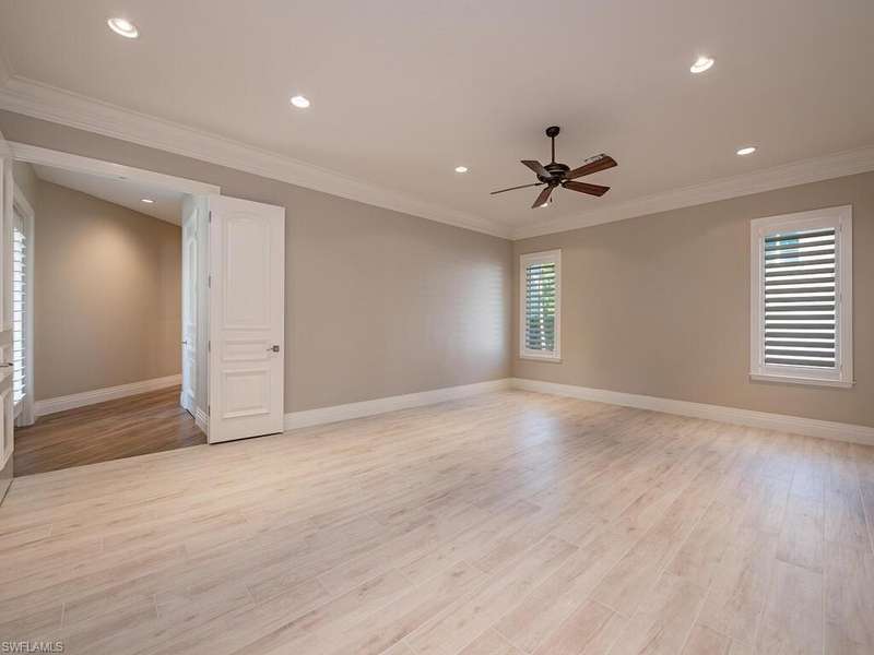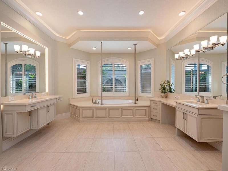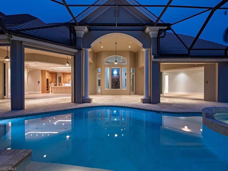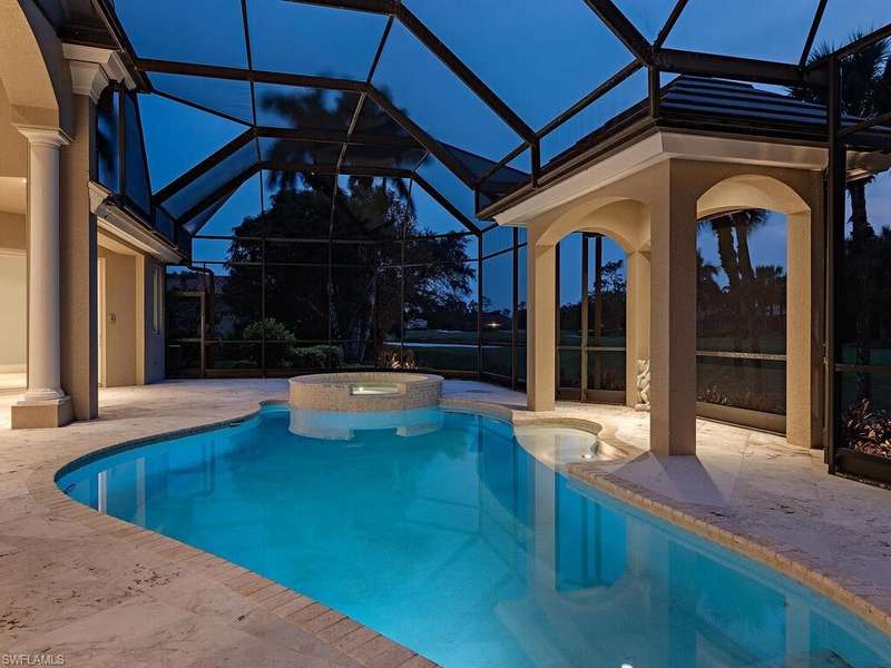 Welcome to Resort Style Living, Welcome to Grey Oaks! This luxurious estate home presents a unique opportunity to own a magnificent property situated on 2 exquisitely landscaped lots at the end of a cul-de-sac. Overlooking the 4th hole of Palm course, privacy is paramount for both guests and owners in this exceptional offering. Designed to facilitate seamless indoor and outdoor living, the main residence boasts 7,035 square feet of air-conditioned space, embodying both sophistication and outdoor leisure with its pool, spa, fountain, lanai, summer kitchen, and outdoor shower. The interior is adorned with elegance, featuring a mahogany and glass front entry door embellished with scrolled ironwork, high tray and coffer ceilings, intricate faux finished details, arched niches, and exquisite wood and Saturnia marble flooring. The property is complete with amenities including a grand stone fireplace in the parlor, 2 offices, and wet bar, a gourmet kitchen equipped with state-of-the-art appl
