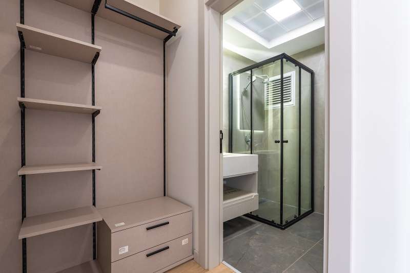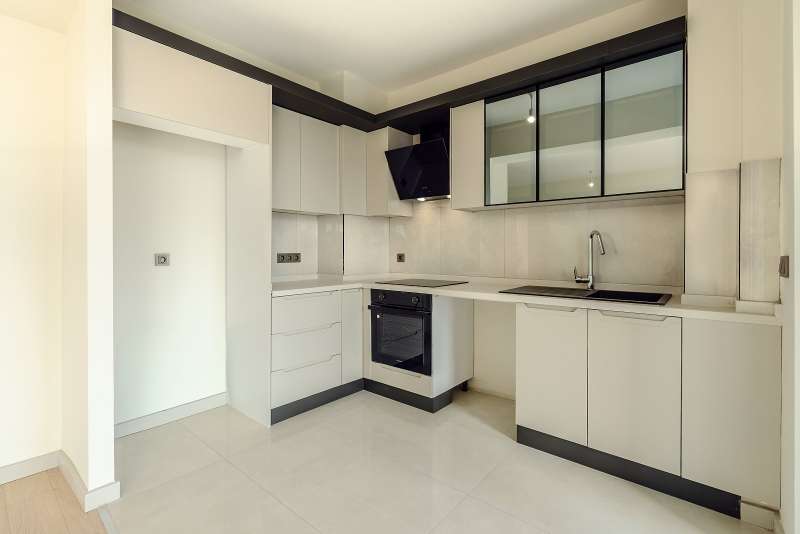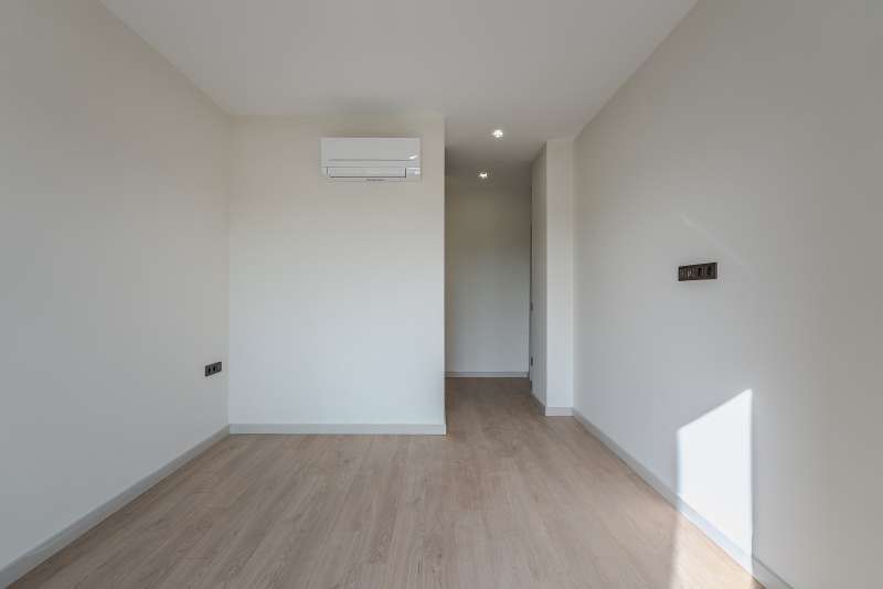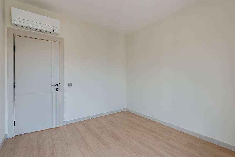 The flats are equipped with triple built-in sets, steel exterior doors, aluminum blinds, laminated floor coverings, floor ceilings, LED lighting, hallway coat raks, A-Class energy VRF A/Cs, and visual intercom systems. The bathrooms are furnished with high-quality ceramic tiles.