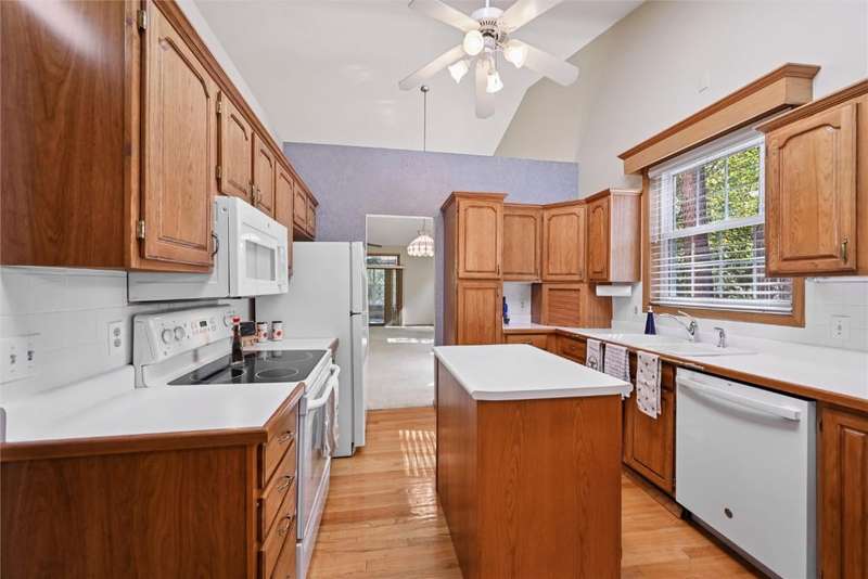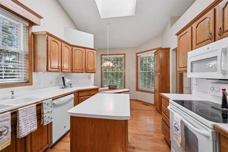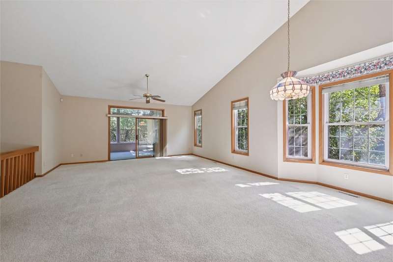 Nestled in the woods! Enjoy the 3 Season Porch. Handy dine-in kitchen. Great room with vaulted ceiling with an abundance of natural light. New Carpet first floor, some Fresh Paint on first floor, The master has two walk-in closets, spacious bathroom with double sinks, walk-in shower, enjoy the Safe Step walk-in jet tub. Community in-ground pool with cabana and restrooms. all Appliances included. Pets welcome, see HOA for pet rules. Warm and Homey lower level with day-light windows, cozy gas fireplace, wet bar. 3rd bedroom has a large storage area, walk-in closet that could be used for office, craft room or small shop. No condo start-up fee. Conveniently located to shopping, parks, Hwy 100, and downtown. Perfect Life Style Choice!