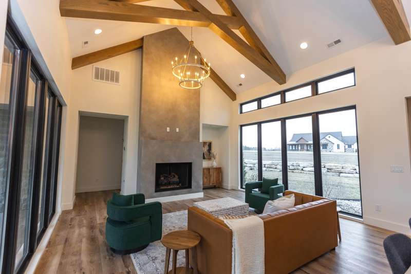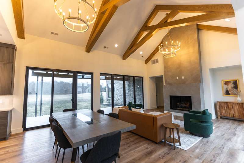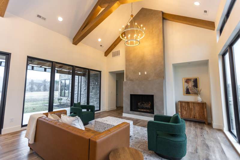 Welcome to this breathtaking home in Southernview Estates, a thoughtfully designed community offering expansive lots, breathtaking scenery, and modern conveniences. Spanning 3.3 acres, this 4-bedroom, 4.5-bath residence is designed for comfort and elegance. Entering the home you'll experience an airy, open floor plan with abundant natural light and a showstopping great room with soaring beamed ceilings and a grand floor-to-ceiling gas fireplace adding a wonderful sense of space.The kitchen is both stylish and functional, complete with quartz countertops, a large island, ample cabinet space, walk-in pantry, and high-end appliances, including a gas range. You'll have plenty of space for dining with the island bar seating and dining space. The cozy study nook provides added convenience to this home and cannot be overlooked. The split-bedroom layout ensures privacy for all. The luxurious primary suite is a must see, boasting a wood-accented feature wall, an exquisite spa-like bathroom with dual vanities, walk-in shower, soaking tub, and a custom walk-in closet. On the opposite side of the home you'll find a 2nd bedroom with ensuite, a chic powder room, and a well-appointed laundry room. The other 2 bedrooms are located upstairs with 2 full bathrooms as well. Outside, you'll find a covered outdoor patio perfect for relaxation along with plenty of space for other outdoor fun. With great proximity to Springfield, restaurants, shopping, and Medical Mile, this home offers both tranquility and convenience.