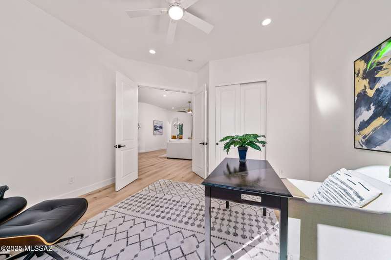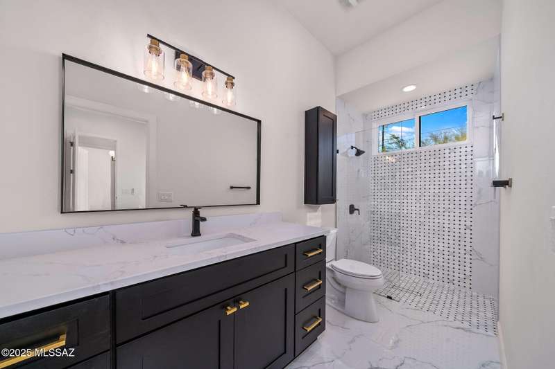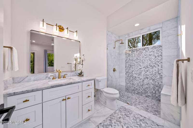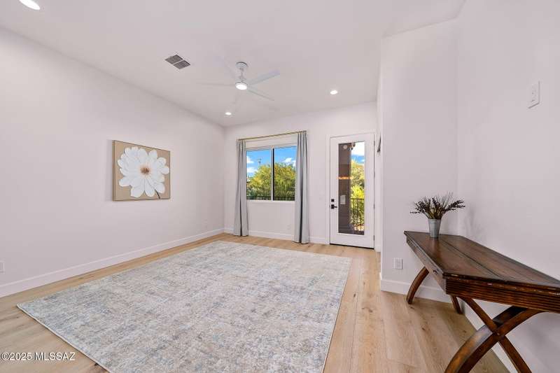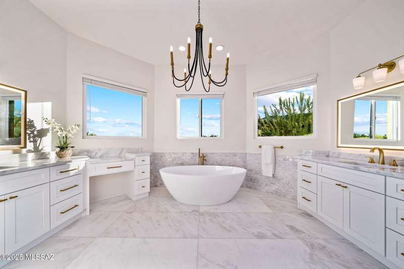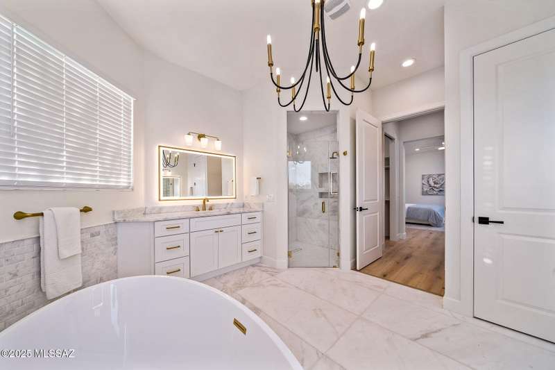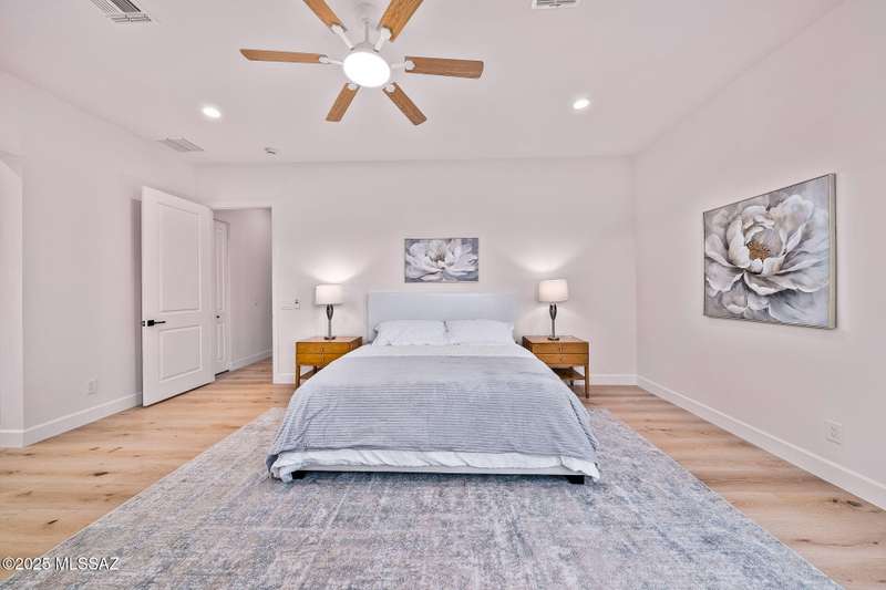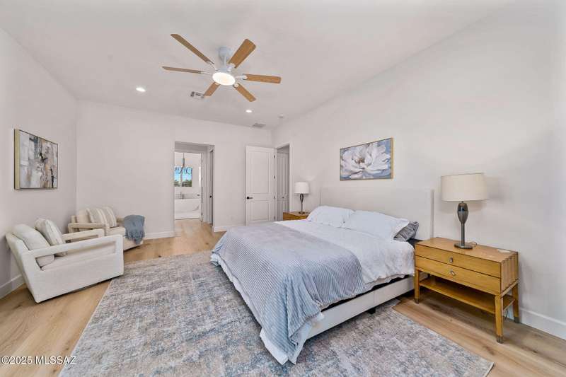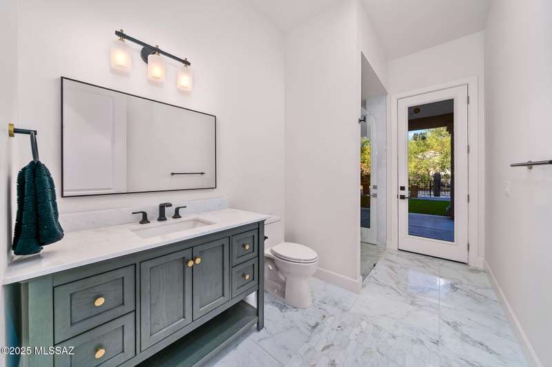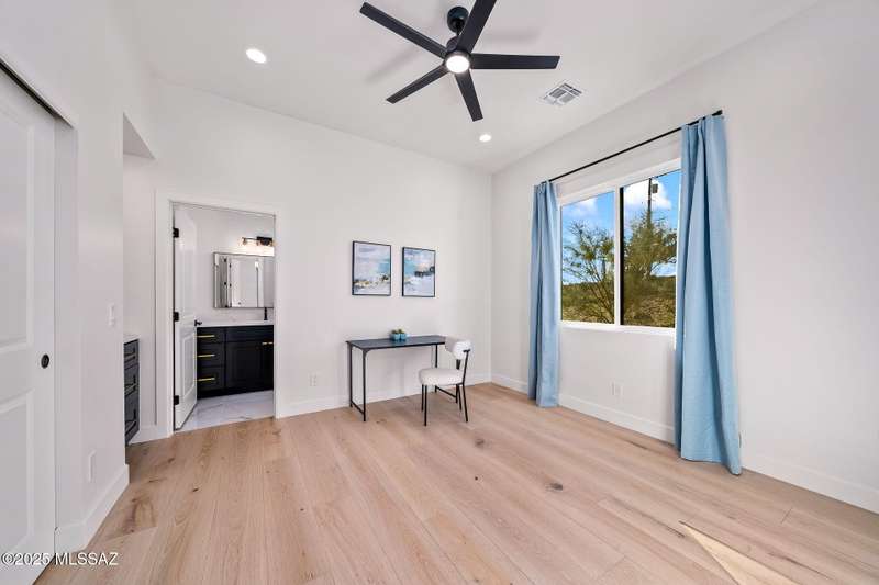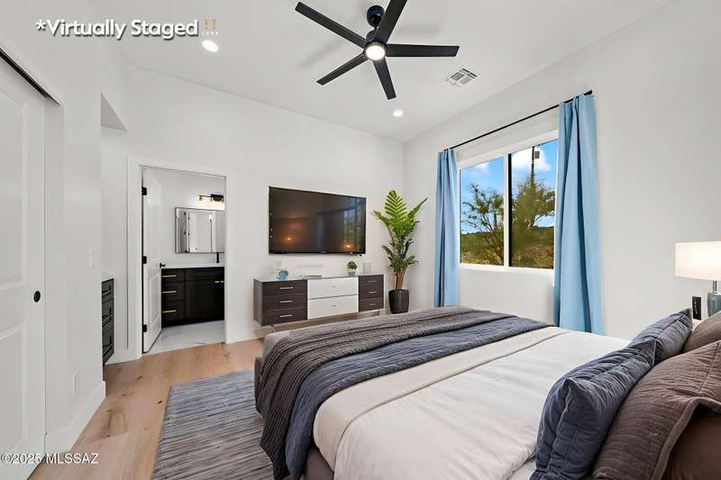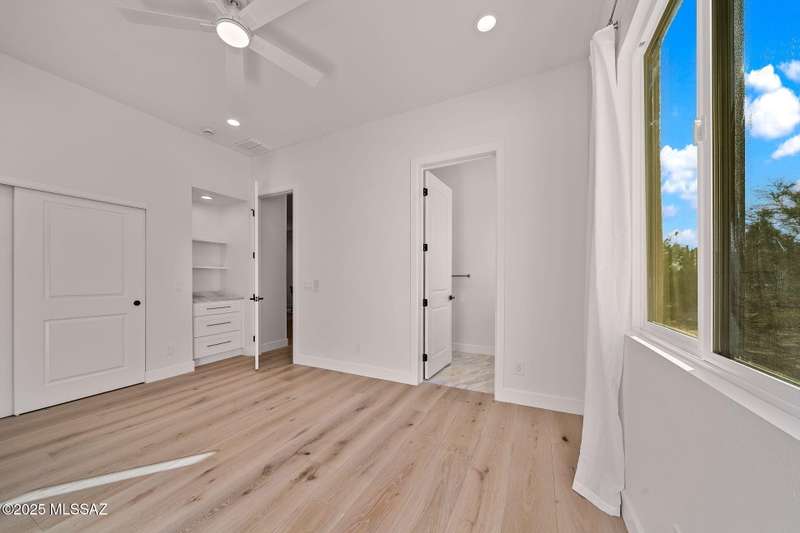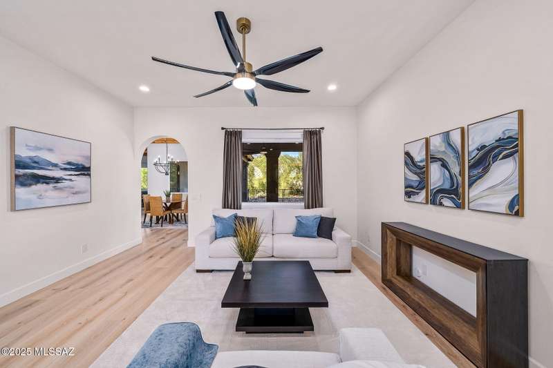 Discover refined desert living in this brand-new luxury residence perfectly situated within Pontatoc Ranch in the Catalina Foothills. Designed for today's discerning buyer, this contemporary masterpiece combines timeless elegance with modern sophistication, offering the perfect balance of privacy, style, and convenience. Set on a 1.03-acre private lot, the home makes an impressive first impression with its expansive paver driveway, mission-tile roof, and a custom iron entry door that sets the tone for the exceptional craftsmanship inside. Step into a spacious, open-concept floor plan with no interior steps, soaring ceilings, and walls of glass. Rich engineered wood flooring and exposed beams add warmth and character throughout. The 3,696 sq. ft. layout offers 5 bedrooms and 5 baths,