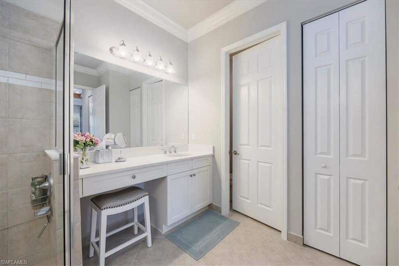 "Live Life Beautifully in Southwest Florida" in this Meticulously Maintained, Fully Furnished Villa with Lake View at Marbella Isles in Naples, FL . Welcome to this beautifully appointed 2-bedroom + den, 2-bath attached villa in the highly sought-after Marbella Isles community. Boasting a serene lake view and an array of upscale upgrades, this meticulously maintained home offers the perfect blend of comfort, style, and functionality - all from its original owner and offered fully furnished. Step inside to find wood-look tile flooring throughout the main living areas, plush carpet in the bedrooms, and designer details at every turn, including crown molding, wainscoting, plantation shutters, and custom draperies. The tray ceilings feature beautiful wood inlays adding a warm, elegant touch. The chef's kitchen is upgraded with soft-close cabinetry, quartz countertops, and premium finishes, matched seamlessly in both bathrooms. The den is outfitted with a California Closet system with Murphy beds, making it a versatile space that allows the home to comfortably sleep six. Additional features include: Two-car garage, Accordion hurricane shutters on all windows and slider, Electric hurricane screen on the lanai, Extended patio overlooking the lake, Upgraded laundry room with brand-new washer/dryer, cabinetry, and sink. Marbella Isles is a low-fee, gated resort-style community ideally located in the heart of Naples - just 7 minutes to Mercato, 10 minutes to local beaches, 15 minutes to Downtown Naples, and 25 minutes to Southwest Florida International Airport. Amenities include: Resort-style pool and separate kiddie pool with slides, Spacious clubhouse with full kitchen, card room, and game room, Tennis, pickleball, bocce ball, half-court basketball, volleyball, Fitness center and social activities for all ages This villa is truly move-in ready - perfect as a full-time residence or seasonal retreat. Don't miss the opportunity to own in one of Naples' most desirable communities!