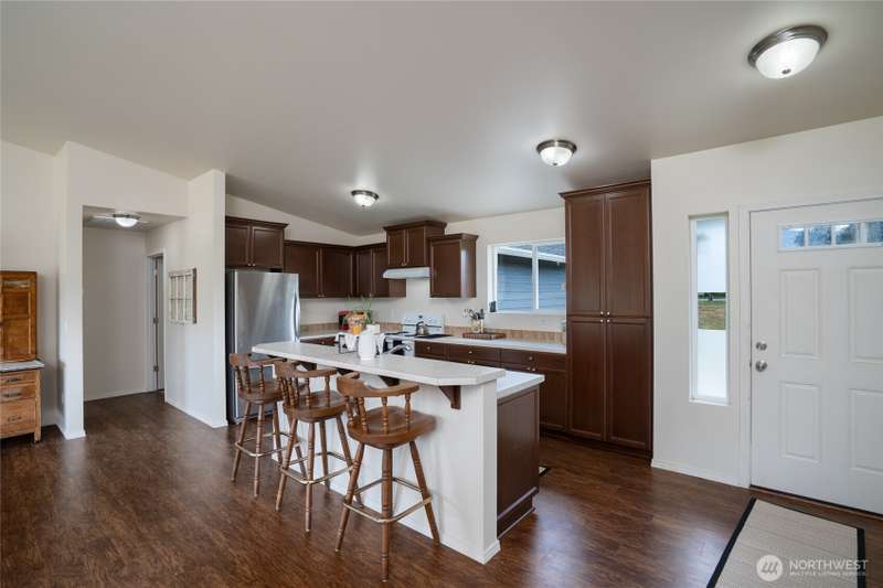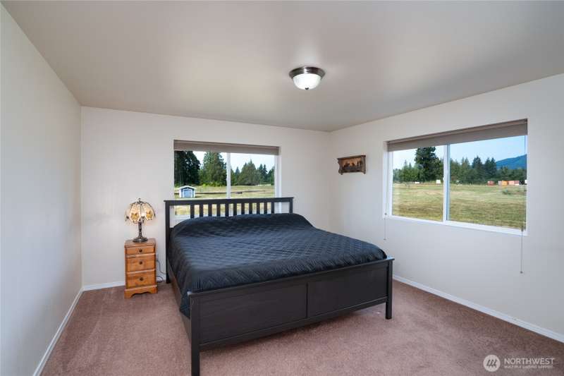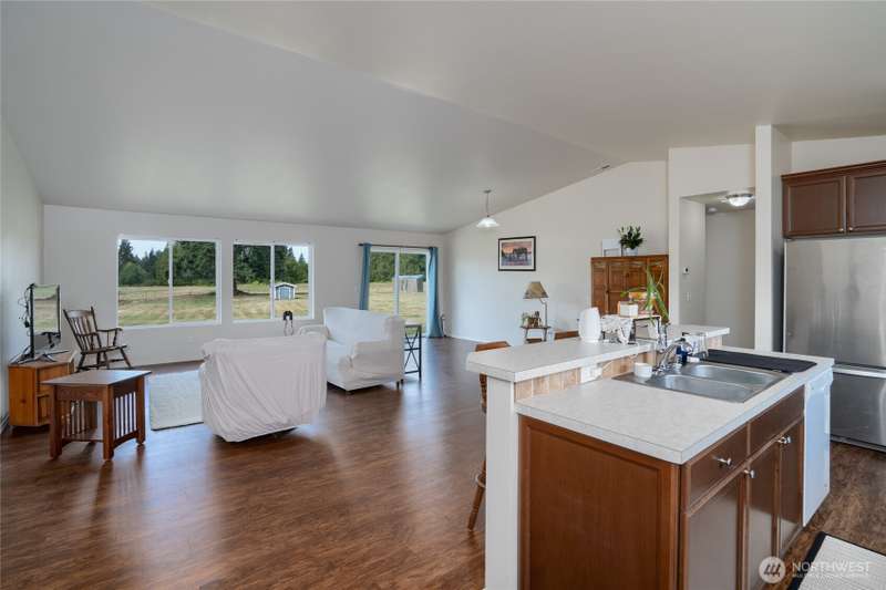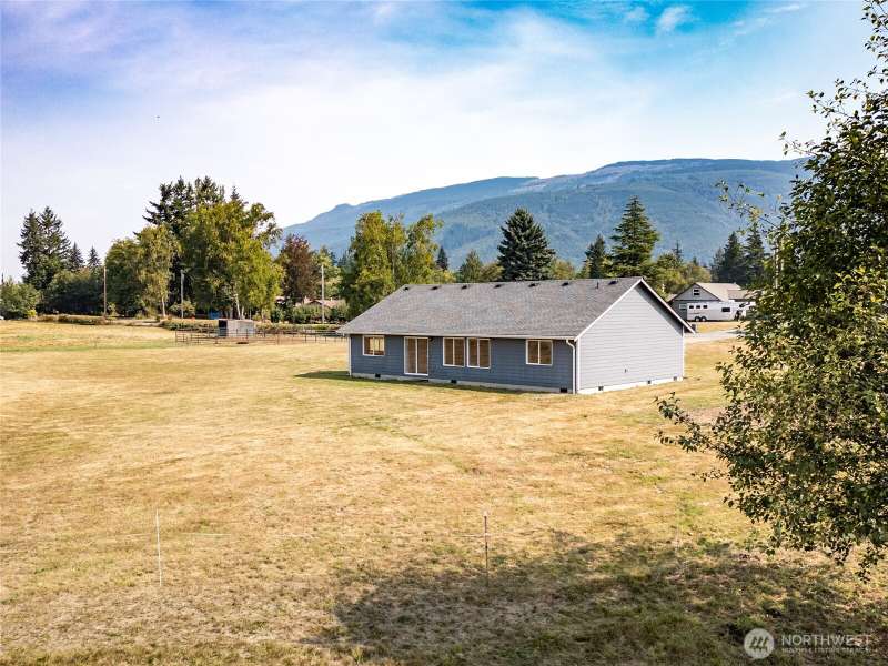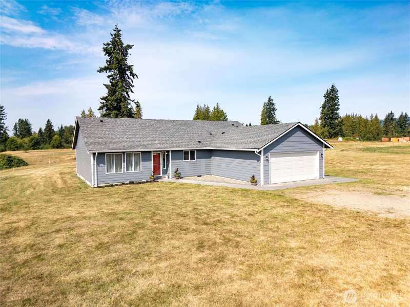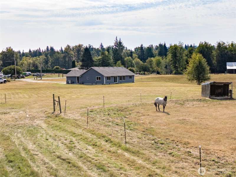 Built in 2016, this Sedro-Woolley rambler blends the comfort of modern construction with the character of a 1940’s barn and milking parlor, all set on 32.95 acres of rolling pasture. Multiple fully-fenced pastures support rotational grazing, while mature Evergreens add timeless beauty to the landscape. The 1,662 sq/ft home offers an open-concept design with vaulted ceilings, LVP flooring, and cement plank siding for low-maintenance efficiency. A heat pump provides year-round comfort. Inside, you’ll find three bedrooms and two full baths, including a spacious primary suite with walk-in closet and en-suite bath. The home overlooks western fields, offering serene views and privacy at the end of a quiet dead-end road—just minutes from town!