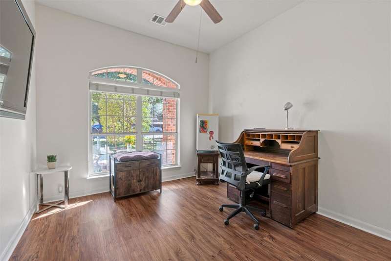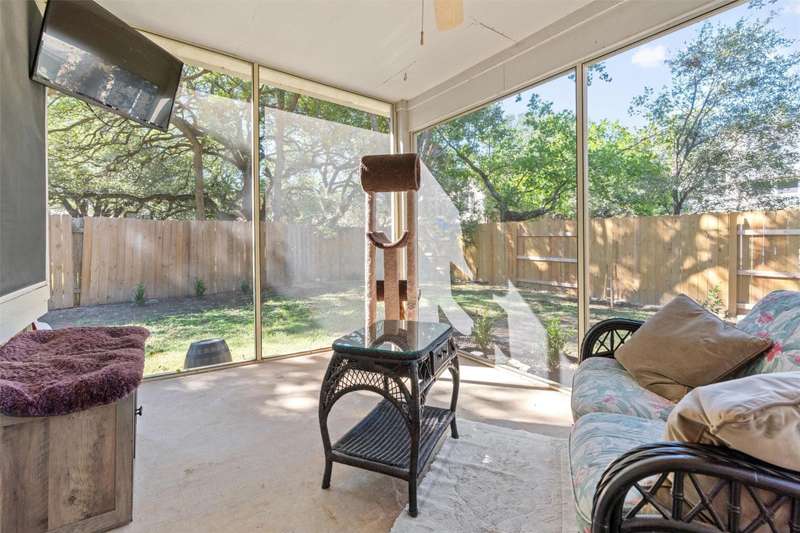 Nestled in one of South Austin’s loveliest areas, this beautiful 3 bedroom+flex room/2 bathroom home is located in a serene, tree-filled community. Offering an ideal balance of comfort and convenience, the home features a flex space - which can serve as a dedicated office or 4th bedroom, formal dining area, and a welcoming living room with a cozy fireplace. The kitchen is designed for gatherings with double ovens, a center island, and abundant storage. Natural light fills the interior, highlighting the home’s warm and inviting spaces. Step outside to the screened-in back patio with a relaxing view of the tree-covered backyard. Neighborhood amenities include pool, playground, hike/bike trails and even Food Truck Fridays! The incredible location is close to Southpark Meadows and other top shopping destinations, Onion Creek and the 300 acre Mary Moore Searight Metropolitan Park. As charming as this home and his neighborhood is as convenient as it is charming.offers easy access to IH-35, SH-45, COTA, ABIA. Don’t miss the opportunity to make this wonderful South Austin home yours! (Click on *Virtual Tour* and select "Floorplan* to see a 3D Matterport walking tour of home.)