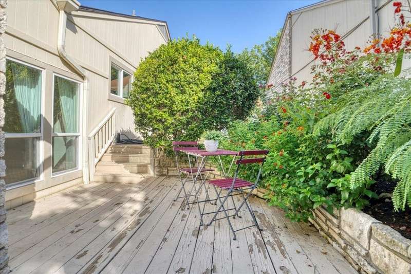 Excellent location in Northwest Hills. This single family townhome has a great location close to Mopac, the Domain, Arboretum and also convenient to downtown and the University of Texas. Split level home built in 1980. Two bedroom/two bath/2 car garage. Re-roofing and gutters replaced in 2022 and Pella windows were installed in 2020. Garage door opener replaced in May, 2024. Wonderful opportunity to create one's own secret garden and private oasis. Residents also enjoy neighborhood pool, tennis and pickleball courts. Come and see this gem!