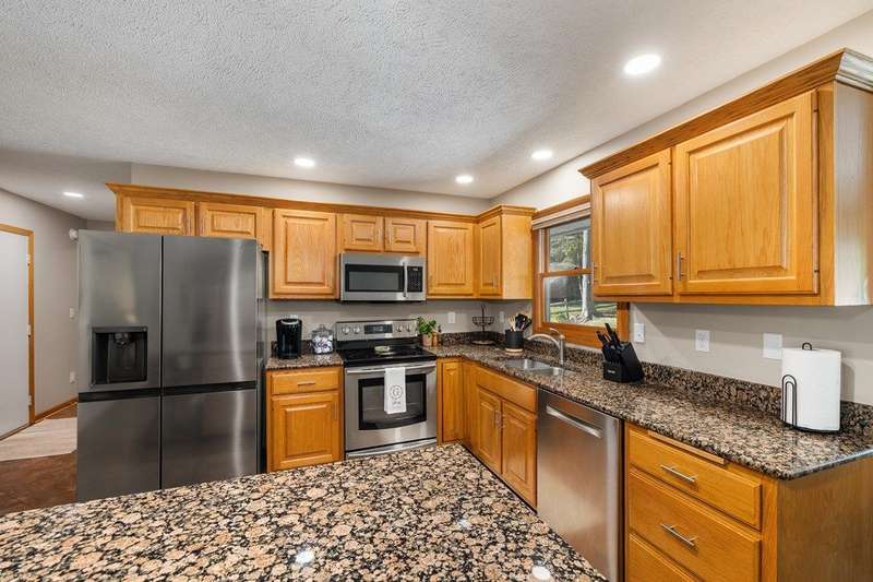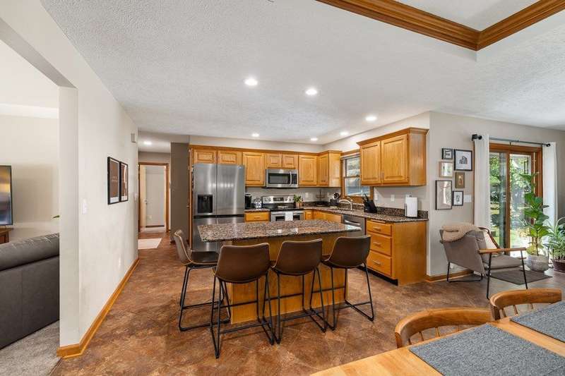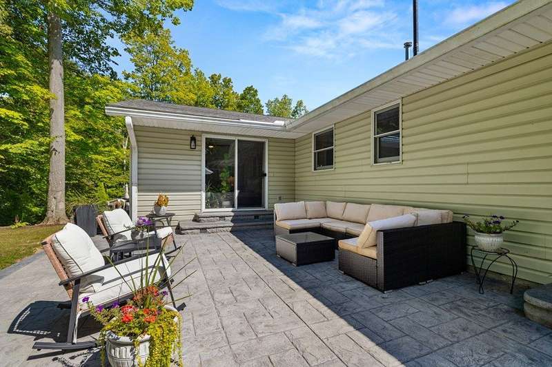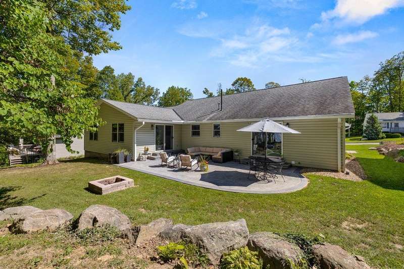 Immaculately maintained and super charming Lexington ranch located on a dead end street. As soon as you enter the home you'll be greeted by the soaring 11.5' ceilings in the large inviting living room. Then on to the beautiful stainless applianced kitchen with granite tops and an island for extra eating space. The adjacent dining area and family room make for a nice open concept family feel. Outside you'll enjoy the large newer stamped concrete patio to enjoy the park like setting. Tastefully decorated and thoughtful designed, this home has trayed ceilings, lots of crown molding and updated fixtures. 1st floor owners retreat with ensuite and patio doors to outside. 1st floor laundry and full basement ready to be finished if extra space is needed. Come check out this classic, won't last long!!