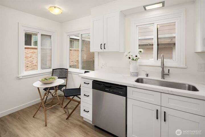 Well-maintained & updated duplex in loyal heights neighborhood. A perfect opportunity to live in upper unit & generate rental income from lower, or rent both for strong income potential. Newly remodeled upper unit has 2b/1b w/new kitchen featuring white cabinets, quartz countertops & new appliances. New bathroom w/new vanity, modern fixtures & new tub. New LVP flooring & fresh interior paint, hardwood flooring, wood-burning fireplace, in-unit W/D, gas forced air heating & double pane windows. Lower-level unit offers 1b/1b w/private entrance, full kitchen, in-unit W/D & new carpet. Enjoy fully fenced front yard & one assigned carport parking off alley. Unbeatable location, steps from transit, shops, dining, & all that Ballard has to offer.