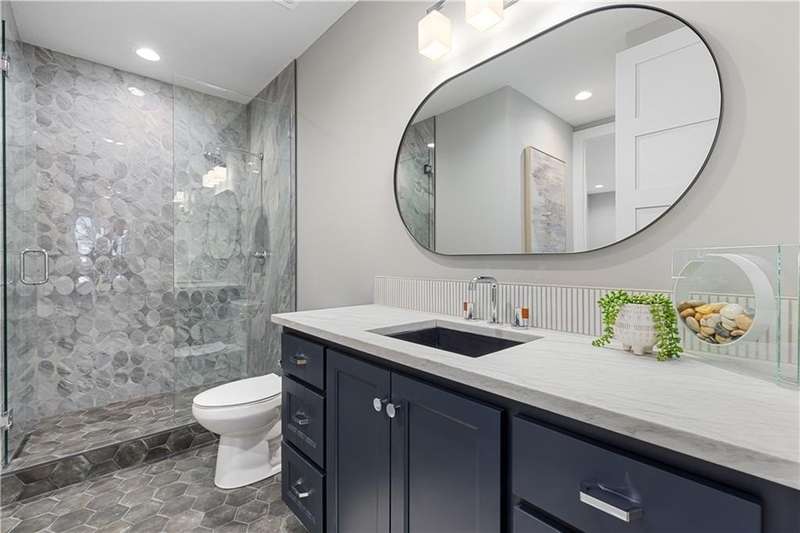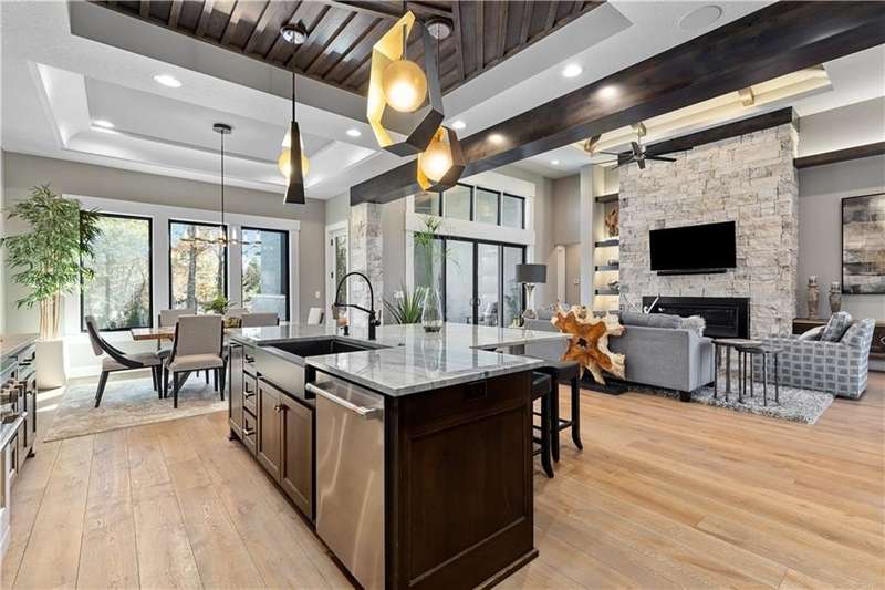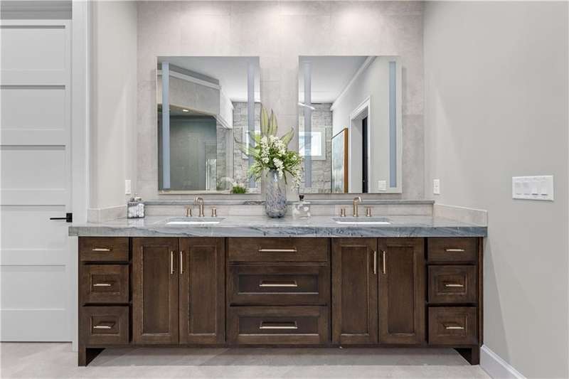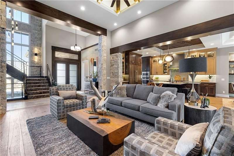 An absolutely stunning wooded homesite frames this picturesque "Pensacola Hill Country" 1.5-Sty plan by B.L. Rieke Custom Homes. This gorgeous home is filled with custom finishes and designer features throughout and will surely leave you breathless after seeing it in person. The Main Level showcases soaring ceilings w/ massive wood-beam accents and custom stonework throughout. The Gourmet Kitchen has quartzite tops of various palettes along w/ tiled accent walls, custom oak cabinetry, high-end appliances and a beautifully designed stain scheme. Walk out to your huge covered patio from the great room to a wonderland of forestry and landscaping, complete w/ a fire pit island surrounded by nature and accent lighting. The Main Level also features a primary suite and bath, along with a 2nd bedroom or study, dining room, laundry, mud room (w/drop zone) and an oversized 4-car garage (2-front/2-side facing). Upstairs, you'll discover (2) spacious guest suites w/ private baths and a secondary laundry room. Downstairs, the daylight Lower Level offers a finished recreation room w/ a huge media wall alongside a large bar w/ a bourbon tasting area & wine room, featuring stone accented walls. There is also a game/lounge room, a 5th bedroom, a 5th bath and even a hidden hobby/craft room. Like all B.L. Rieke Homes, this one boasts exterior finishes that blend seamlessly with the interior and the nature surrounding it. Incredible landscaping, concrete work and natural wood/stone finishes will also blow you away. "HOME IS COMPLETE & MOVE IN READY"