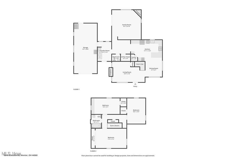 Charming Colonial with Modern UpdatesTake a look at this beautifully updated Mentor home! The kitchen has been completely remodeled, showcasing modern finishes and functionality. Enjoy cooking in the open concept layout with soft close cabinets, quartz countertops, modern light fixtures and recessed lights, and stainless appliances including a beverage cooler! Gather and relax in the cozy living room, or large sunken family room - both featuring wood burning fireplaces. There is LVT flooring throughout the first floor - and new carpet upstairs in the three bedrooms. Easily accessible attic storage space and linen closet. Step outside to enjoy a huge fenced-in yard with a brick patio, a gorgeous deck with pergola, and plenty of space for outdoor entertaining. Big ticket updates include electrical panel, windows, doors, gutters, and vinyl siding for lasting curb appeal - you don't even have to put up Christmas lights - they are already there! Nest thermostat, all new light fixtures and ceiling fans as well! 1 Year home warranty included.Schedule a showing today and make this your new home before the holidays!