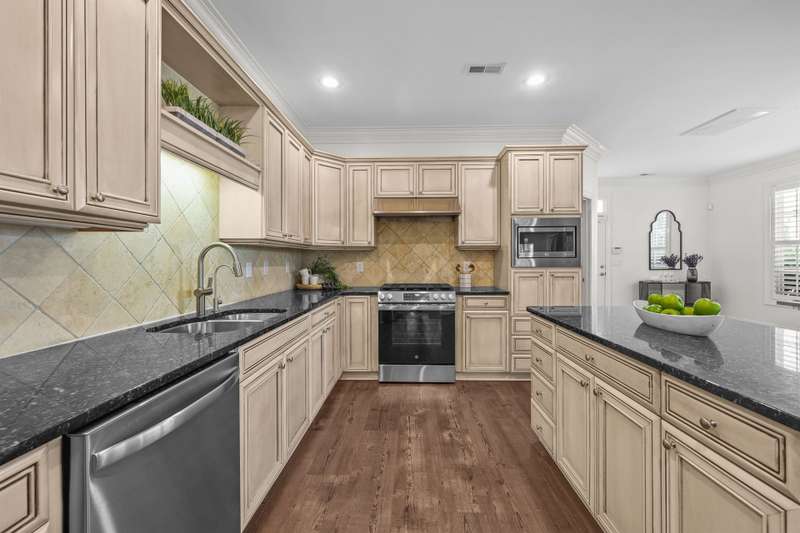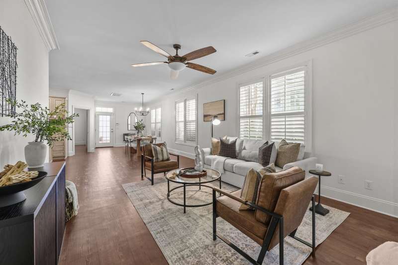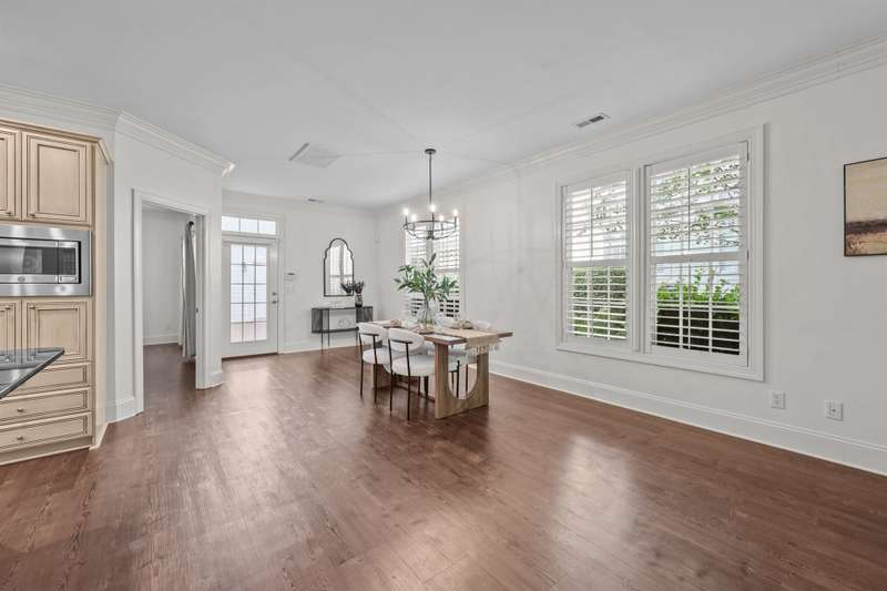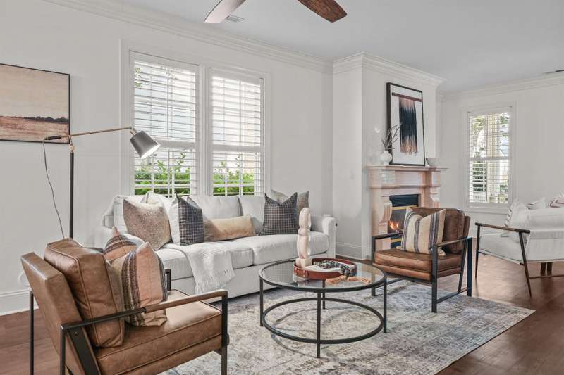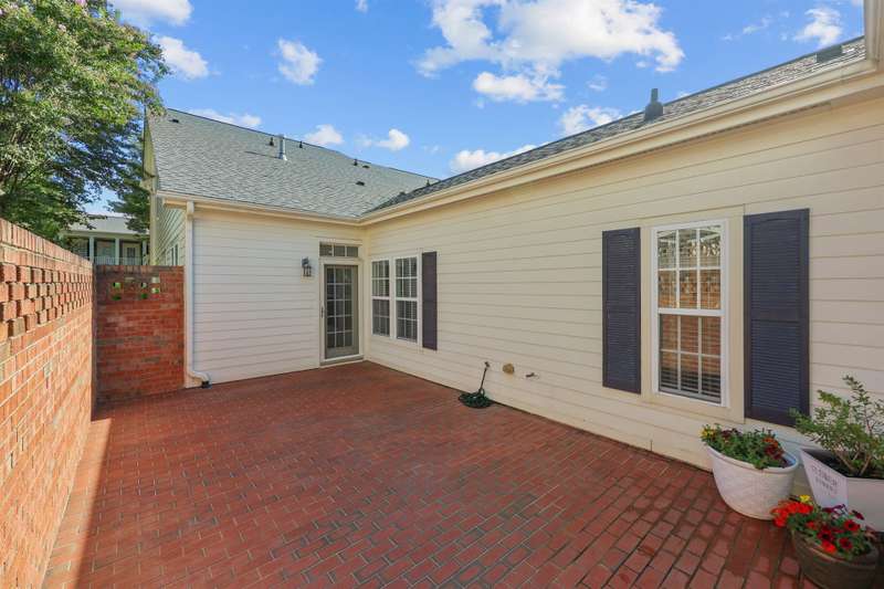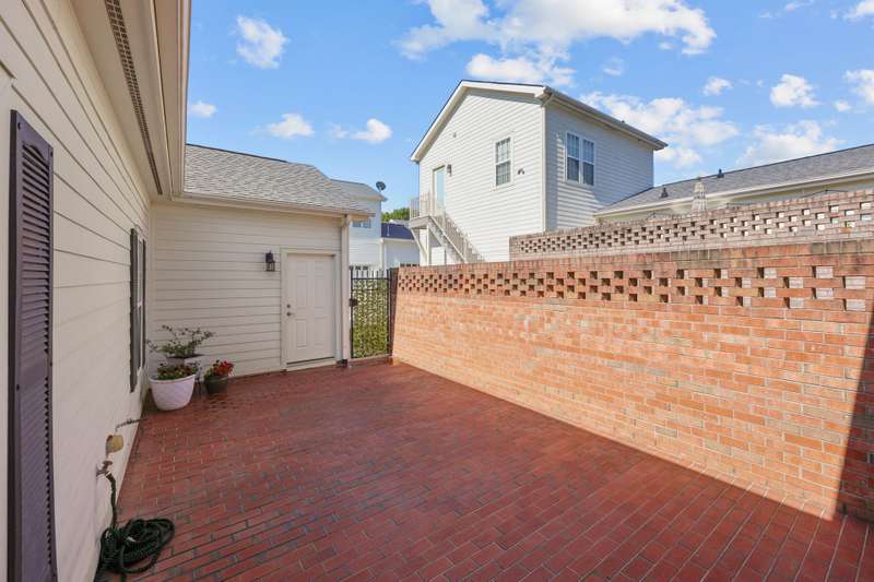 RARE END-UNIT townhome walking distance to downtown Davidson! Enjoy living in this quaint and picturesque Charleston-style community close to Lake Norman, Cornelius, top-rated schools and all that Davidson has to offer! The desirable OPEN FLOOR PLAN allows for plenty of natural light and flexibility. Meticulously maintained, the move-in ready interior features neutral colors, plantation shutters, crown molding, wainscoting, luxury vinyl tile, granite countertops, stainless steel appliances and an island perfect for entertaining. The private, gated brick patio area is perfect for dining al fresco and allows for natural sunlight for potted plants, vegetables, etc! Enjoy the quiet ambiance and tree-lined streets from the covered front porch as well. Upstairs features two additional bedrooms, full bath and loft space. Storage is not an issue with walk-out storage on the second floor and a 2 car garage!