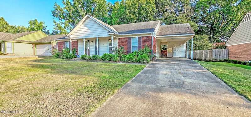 Located in The Park at Pigeon Roost Subdivision, this charming one-level home offers 3 bedrooms and 2 baths. The kitchen features snack bar and solid surface countertops, abundant cabinets, dining table nook, large pantry, stove with vent hood, and new dishwasher. Spacious 15x14 Great Room includes fireplace with gas logs. The 14.8x11.7 primary bedroom boasts salon bath with elevated vanity, double sinks, walk-in shower, jetted tub, and two walk-in closets. Bedrooms #2 and #3 are both 10x10. Additional highlights include fresh interior paint, brand new carpet, new flooring in kitchen, laundry room with two shelves, and double garage with storage area. Enjoy the patio-sized lot with covered and extended patios, low-maintenance brick and vinyl siding, gutters, and architectural shingle roof. Residents enjoy private park with mature trees and gazebos in the center of this one-entrance neighborhood. Call now! Some photos virtually staged with furnishings and draperies.