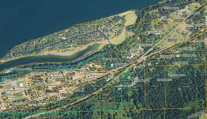 Amazingly unique property! This developed 5.47 acres has some Lake Roosevelt views and you can live on the property while you build! There's a 24'x30' shop w/power, bolted truss system, loft, concrete floor, 2-10'x10' doors and oversized man door. This lot has great access off the Hwy w/a level graveled RV pad, underground power,100 amp service (50 amp @ RV connection), 110 weatherproof outlet @ the pedestal. There is a 3-bed approved septic. drilled well in 2023 @ 20 gpm w/a 2.5 hp on-demand pump w/controller and in-well freeze proof pressure tank w/3 frost-free hydrants. There's a hydrant at the RV site and a T-connect for your future home. This property is Waterfront access via a trail, timbered and the top acreage has been mitigated for fire-safety w/DNR. NO Trespassing w/o broker apt This property sits above the Marcus Island Campground w/a 1310' waterfront boundary and you can walk to the campground and Lake Roosevelt from your property by trail or the beautiful blacktop easement road. There is a variety of wildlife and birds that frequent the property, turkey, deer, quail to name a few. Remove timber to open up your view. Surveyed. 1310-Waterfront.