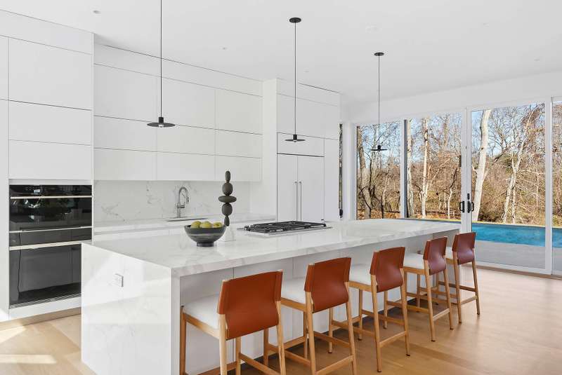 This classic Hamptons residence combines the most preferred traditional and modern design and architectural elements to maximize comfort, convenience, and space. The new Sag Harbor home offers 3,724+/- sf of living space on the first and second floors including 5 bedrooms, 5 and one-half baths, complemented by a finished 1,563+/- sf lower level with 1 additional bedroom, one & one-half baths, laundry, wine closet, entertainment room with walk-out access and a gym. The open floor plan features a beautiful gourmet kitchen with Wolf range, Sub-Zero refrigerator, an oversized island with sink, dishwashers and bar area, a wine cooler, and custom cabinetry, open to the family room and dining area. Running nearly the length of both the kitchen and family room is the stunning, custom, 24' ft wide Eagle sliding door that opens to a terrace and swimming pool area. An entertainer's paradise, the first floor is completed by a living room with a sleek double-sided 72' fireplace and a bedroom with en suite bath. Up a modern, floating staircase, the second floor offers 2 well-appointed guest bedrooms and a luxurious master suite. Occupying the entire left wing, the exceptional master suite includes a stunning marbled master bath with heated floors, a dressing room, and a private outdoor terrace accessed by 16± ft custom Marvin sliders. This showcase home is set on a sprawling 1.70± acres in a private Sag Harbor location. Near to both Sag Harbor and Southampton Villages, Long Beach, marinas, golf courses, beautiful parks, and nature reserves. A perfect new home in a perfect Hamptons location.