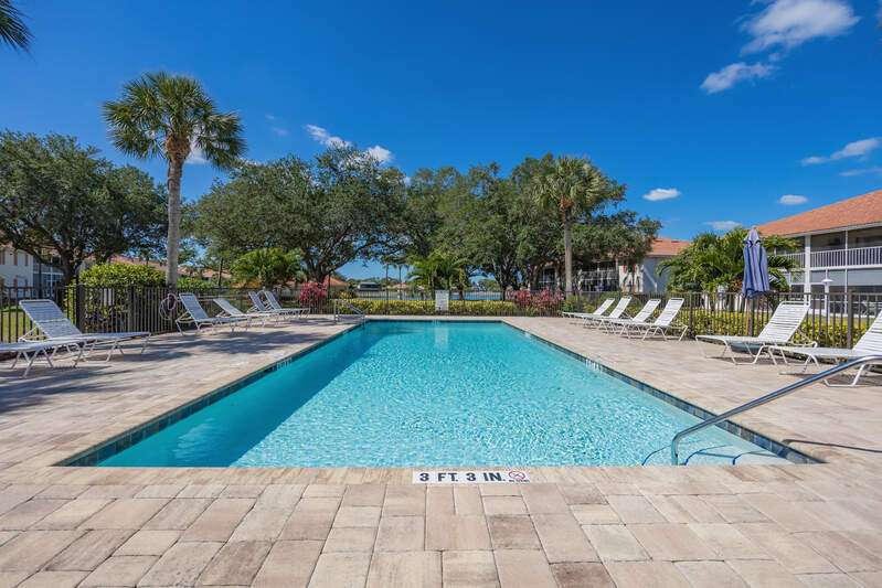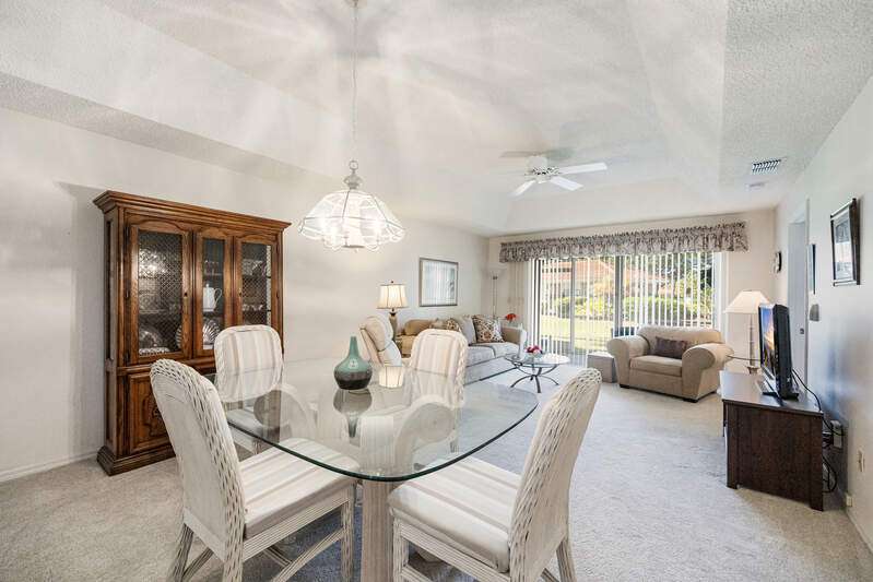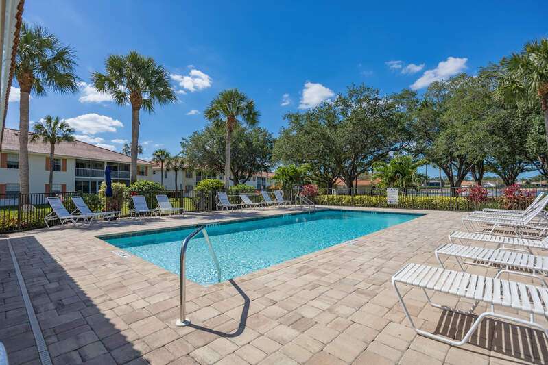 Move-in ready!!! This turn-key furnished first-floor, two-bedroom, two-bath condominium offers comfort and convenience just steps from the community pool. Inside, you'll find a spacious living area, a dedicated dining space, a split-bedroom layout for privacy, and a large walk-in closet in the primary suite. Relax on the screened lanai and take in the peaceful surroundings. Berkshire Lakes offers scenic walking paths that wind past the community pool, tennis courts, and more. Ideally located just minutes from outstanding dining, shopping, and pristine beaches, this neighborhood also provides easy access to everyday conveniences like Publix, gyms, and medical offices. You can't beat the location!