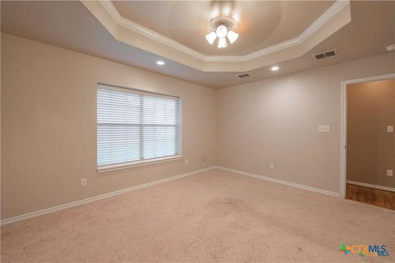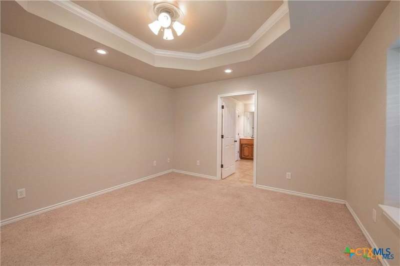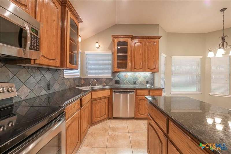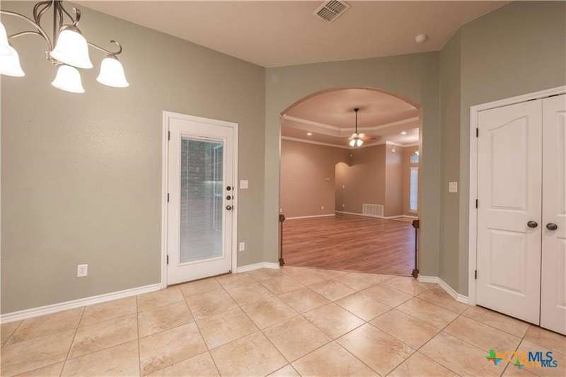 Welcome to this impressive Carothers home located in the desirable White Rock Estates community. The property offers excellent curb appeal with a mix of brick and stone exterior accents, mature oak trees, and fresh landscaping. Inside, the spacious living room features laminate Pergo-style wood flooring, a corner wood-burning fireplace, and a trey ceiling with crown molding. The open kitchen and dining area includes granite countertops, an island for added workspace, stainless steel appliances, slate tile backsplash, a walk-in pantry, 24 cabinets with adjustable shelving, and under-cabinet lighting. Programs Available: Flex Rent -- Split your rent into smaller more manageable payments that fit your budget-and your life. OBLIGO -- Instead of paying your full security deposit upfront, qualified renters have options to pay a smaller, non-refundable Obligo fee. The primary suite offers a trey ceiling, crown molding, a jetted corner tub, separate walk-in shower, and double vanities. Additional features throughout the home include ceramic tile in wet areas, carpeted bedrooms, 2-inch faux wood blinds, and a full-yard sprinkler system. Enjoy the covered back patio overlooking the mature trees, providing a relaxing outdoor space conveniently located just off the kitchen and dining area.