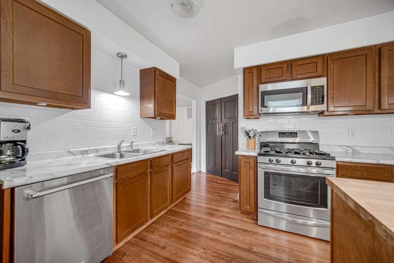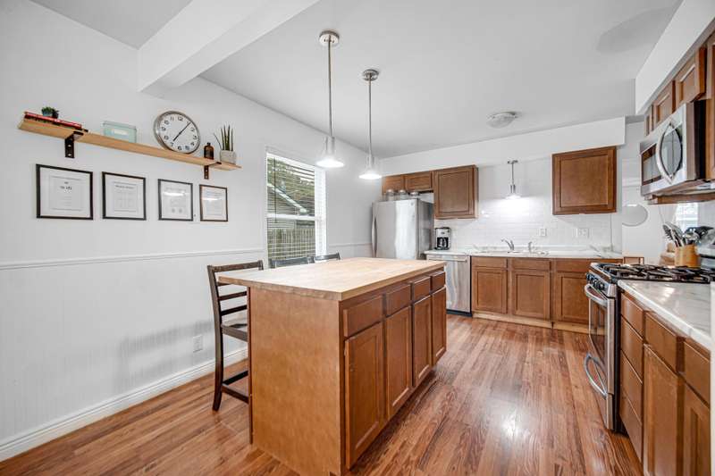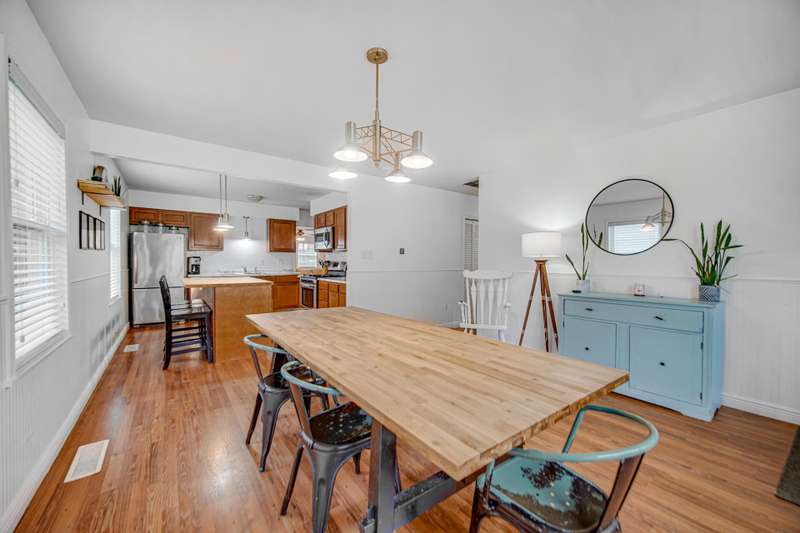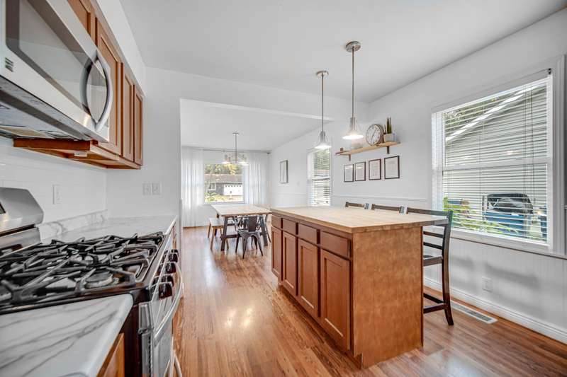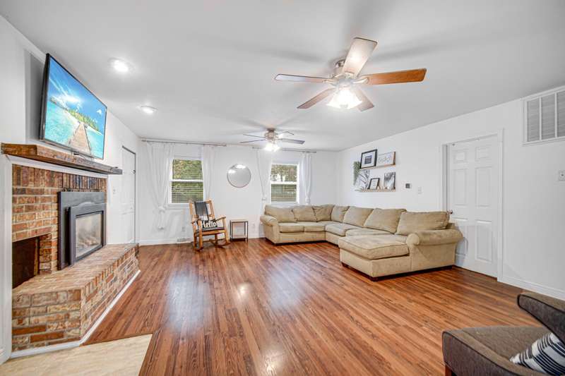 Set in a prime location, this ranch home has been remodeled and is ready for you to move in! Discover this beautiful 4-bedroom, 2-bath home, offering 1,664 square feet of living space. KEY FEATURES include- Kitchen: The large kitchen features newer cabinets, tiled backsplash, an island with seating, butcher block top, and all appliances. The kitchen opens into the flexible dining room, which can be also used as a 2nd living area. The spacious great room at the rear of the home is complete with a rebuilt gas fireplace, which is sure to keep you warm and cozy this winter! Great room also has an exterior door that provides access to the back yard. The primary bedroom and full bath are situated apart from the other 3 bedrooms, providing added privacy and flexibility to serve as a guest suite if preferred. Laundry room with washer and dryer. Newer windows and furnaces.