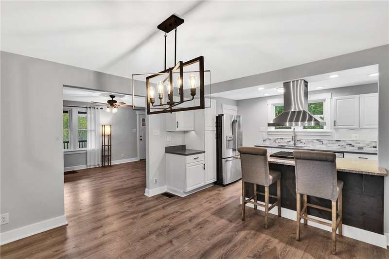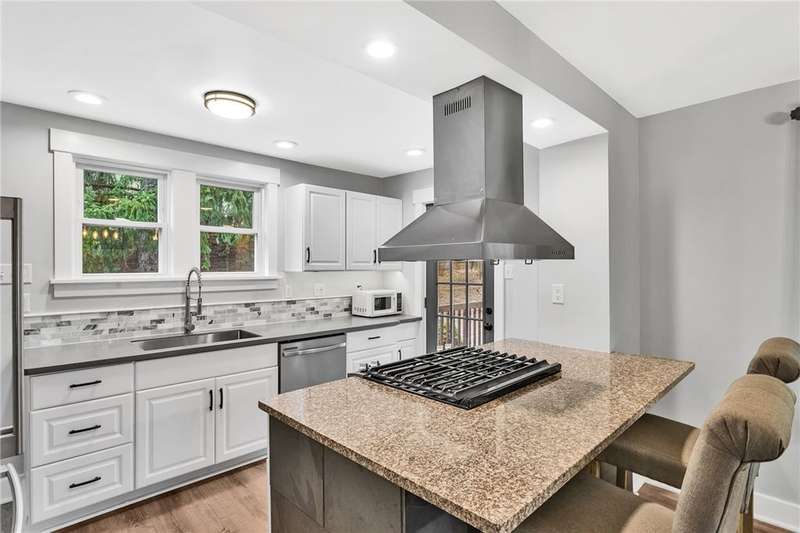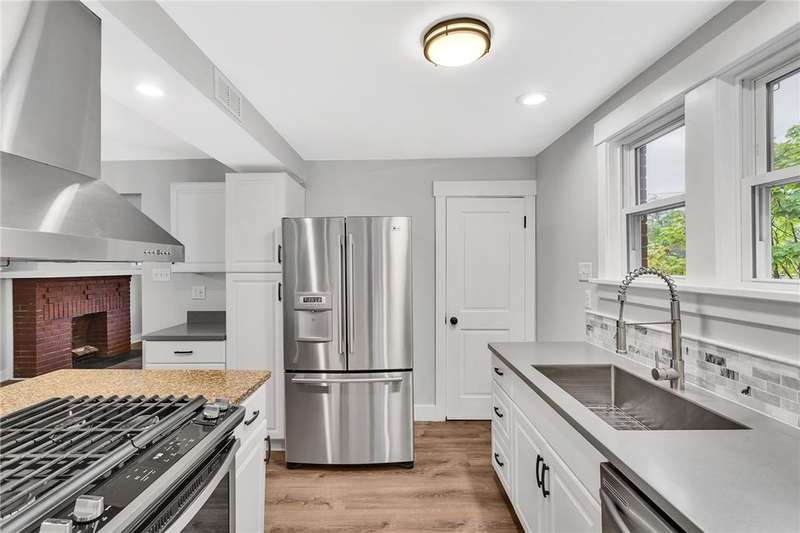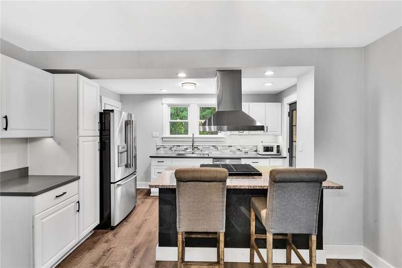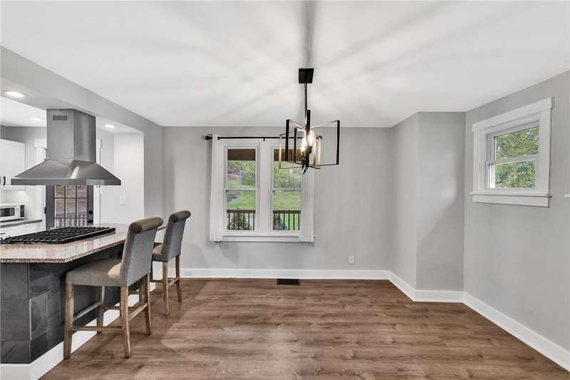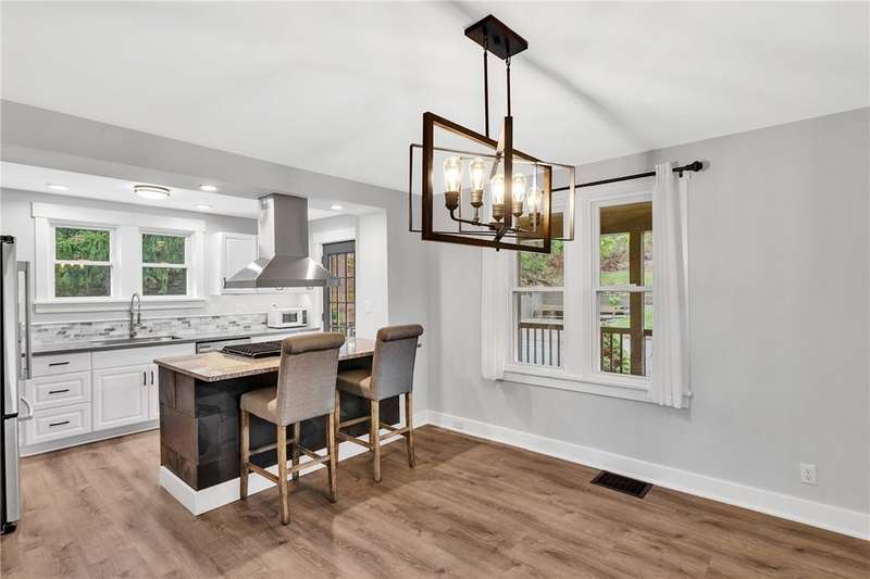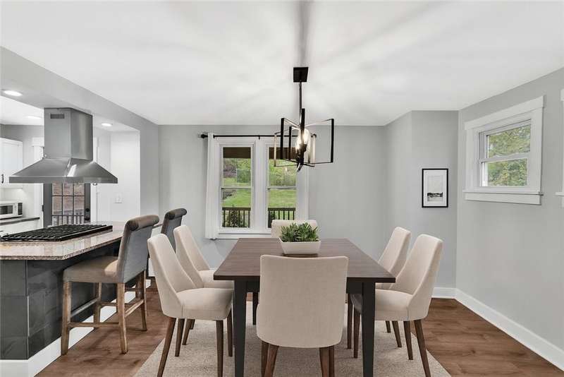Tucked away yet perfectly connected, 4220 Northern Pike feels like your own private cottage oasis in the heart of Monroeville. This charming, fully updated home welcomes you w/its warm brick exterior, inviting covered porches, and peaceful, tree-lined setting. Every detail feels fresh, clean, and move-in ready. Inside enjoy an open airy floor plan highlighted by new flooring, updated light fixtures and freshly painted in neutral colors. Walls and attic have been insulated. Front porch w/new flooring. New front/back doors. Sleek kitchen features new cabinets*stainless-steel appliances*solid countertops*designer tile backsplash*stainless sink w/modern faucet and large center island w/gas stove-ideal for cooking and conversation. Adjoining Dining area makes entertainment effortless. Upstairs are 3 roomy bedrms w/new carpet. The hall bath is modern and updated. Water Heater 2019/Gutter Helmet 2019/Furnace2018/Roof 2017/Dishwasher 2024.Urban convenience and tranquil comfort.