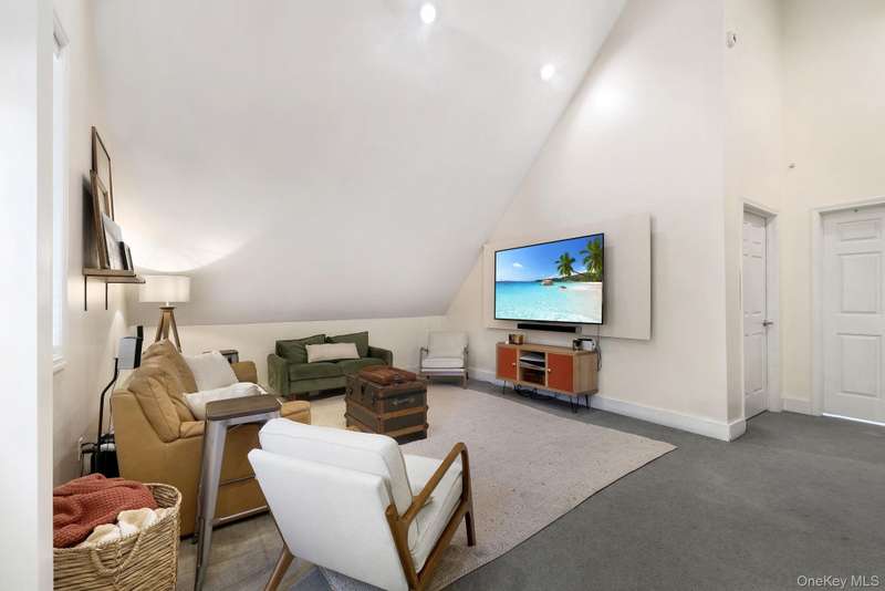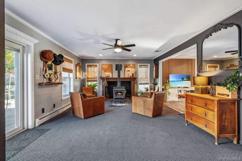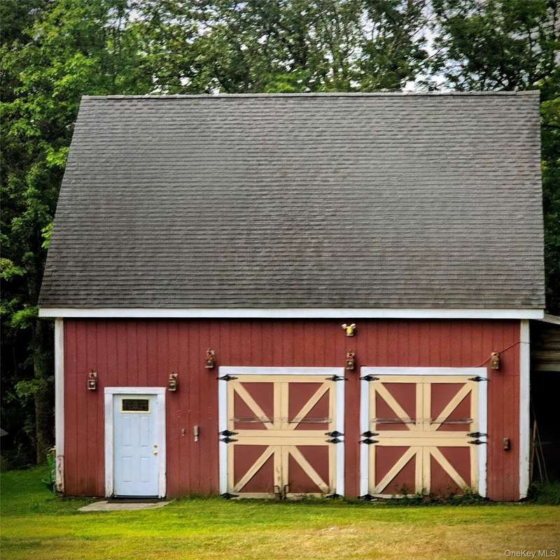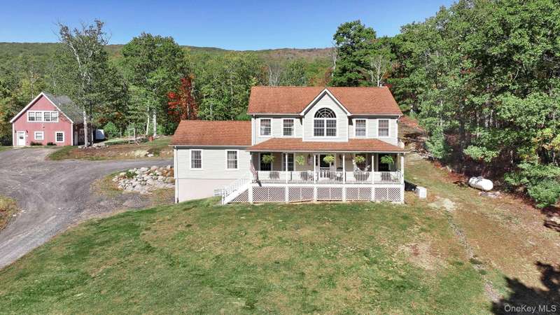 Here is your opportunity to own a versatile homestead with something for everyone! Over 5 private acres with the Minnewaska State Preserve as your backyard, the outdoor enthusiast has direct access all the way to Sam’s Point. As you enter the main home from the rocking chair front porch with seasonal views, you will notice the contrast of the home’s traditional exterior with its elegant and modern interior. You can see how every detail has been carefully considered as you step inside to a versatile room, ideal as a formal dining room or office, with French doors leading into a Great Room featuring vaulted ceilings, abundant natural light, and wood paneling that adds a warm, chalet-like feel. A large walk-through pantry connects the Great Room to the kitchen, which boasts new Dekton counters and backsplash—a durable, carbon neutral and non-porous material resistant to stains, scratches, and extreme heat—complemented by new Cafe white appliances with brass accents. The kitchen flows into a bright, eat-in area overlooking the family room, complete with a wood stove and sliders opening to a stamped concrete patio. The formal living room offers a custom acoustic walnut panel wall and built-in desk, perfect as a sitting area, office, or library. Upstairs, you will find a generously sized master en-suite with vaulted ceilings, Jacuzzi tub, stall shower, dual sinks and walk-in California Closet. The remainder of the second-floor features 3 additional bedrooms, a full bathroom and ample closet space. The third bedroom has a large, arched window with beautiful seasonal views. The entire upstairs features new wall-to-wall carpet. In addition to the main home, the property also includes a stunning auxiliary 1400 sq. ft. building with an inspirational custom loft space, ideal for a home business/office, studio, or potential for an additional living area. The back of the auxiliary building has three outdoor horse stalls ready for you to bring your animals! The possibility for multi-generational living, allowing family to live close by while maintaining privacy is the real WOW factor of this property. There is also a dedicated electric vehicle charger on the 2-car garage as well as a 22kw Generac generator capable of powering the entire property. Close to Resorts World Catskill Casino, Kartrite Resort & Indoor Waterpark, Legoland, Mohonk Mountain House, Bethel Woods Center for the Arts, Breweries, Wineries, Restaurants, festivals and more! Pine Bush School District.