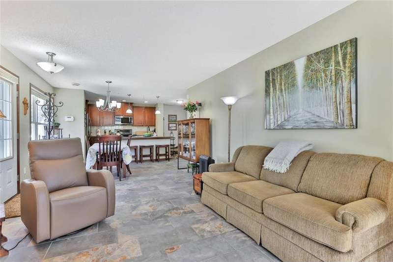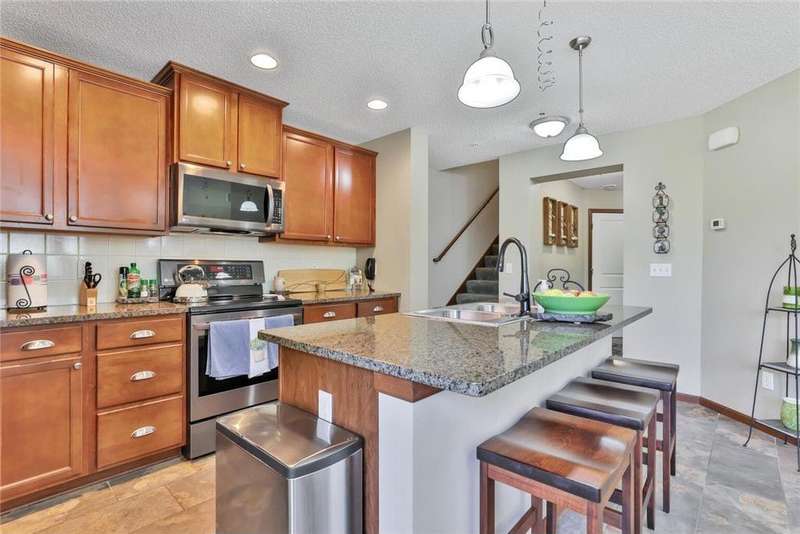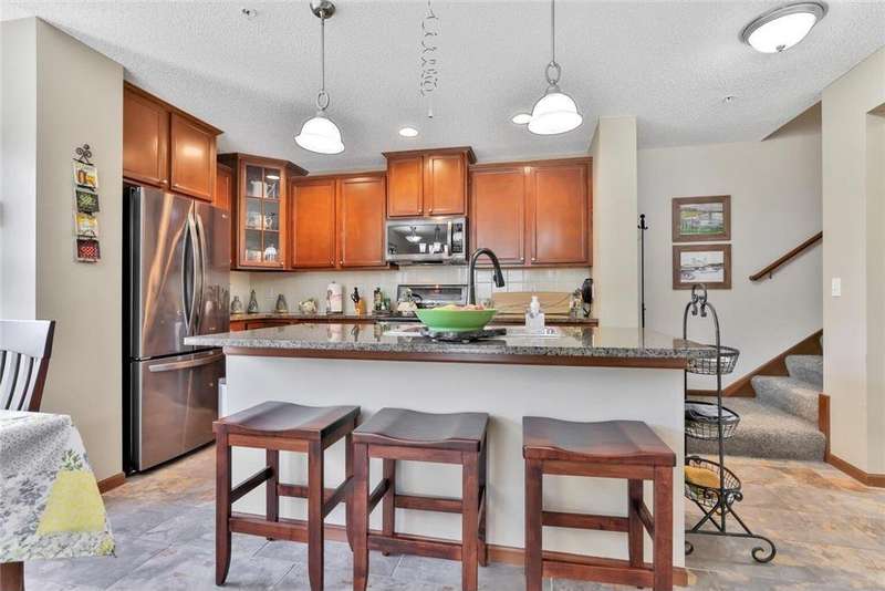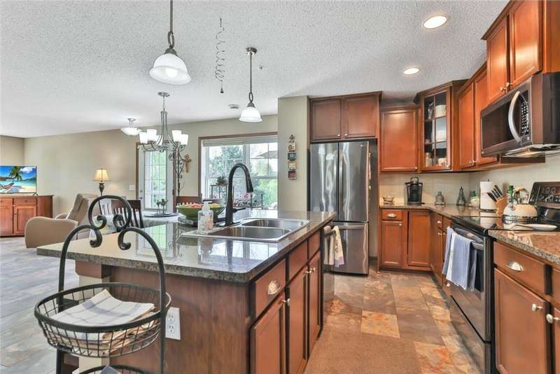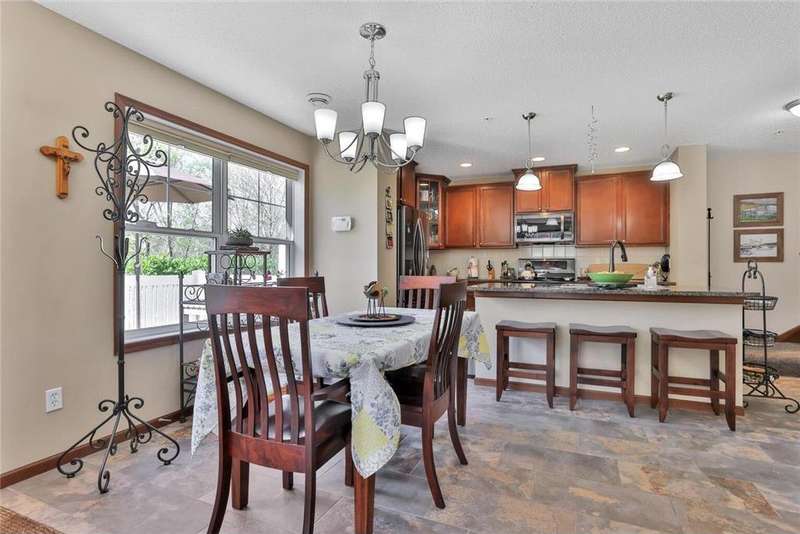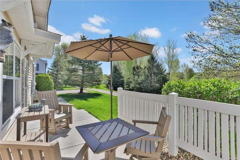 Sale contingent on seller finding a home. Move-in condition end unit townhome. Stainless appliances are new, granite counter tops & center island, new water heater, new washer, dryer, new garage door opener, main floor heated tile floor, custom window treatments, alarm system for windows. End unit with plenty of windows and natural light. Patio with private sitting area and great view. Owners suite and additional 2 spacious bedrooms all on 1 level. Loft area has endless options. Stillwater schools. Park nearby along with walking trails. Only 2nd owner of this unit and it shows like a new model. Cabinets in garage do not stay with unit. Seller will remove.