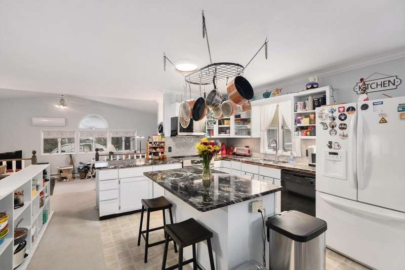 Welcome to this well maintained 3 bed, 2 1/2 bath ranch with 2,862 total sq ft with the primary bedroom and laundry on the main level, and 2 stall garage. The main level features Primary BR, 1 1/2 bath, updated kitchen with newer (2024) granite countertops/island/ backsplash/sink, an induction oven and microwave, along with 2 potential offices/hobby rooms, large living room with tons of daylight. Comfort and efficiency is provided by a 4-zone boiler system and a Mini-Split (2021) to cool the house. The finished lower level provides 2 bedrooms, an additional non-conforming 4th BR or office, full bath, large living room and loads of storage space. Enjoy peace of mind with a home warranty and survey provided by seller.