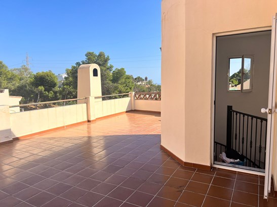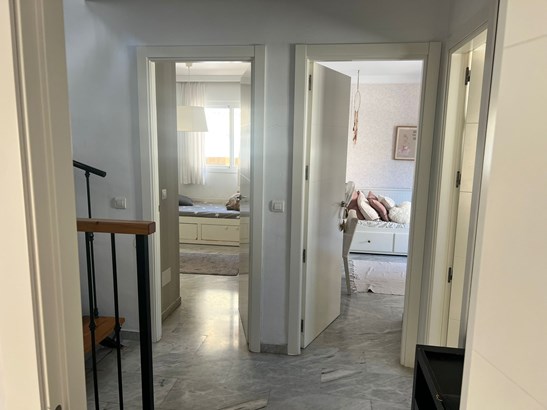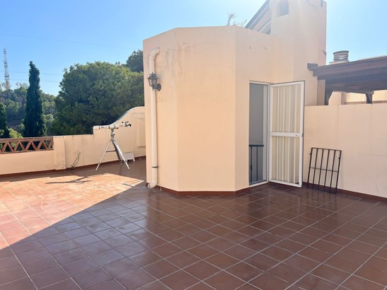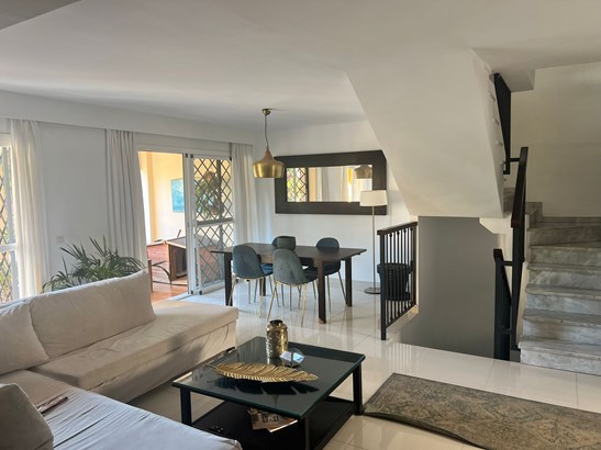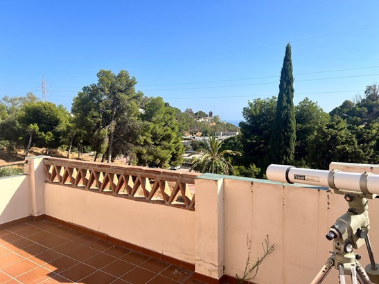 We are proud to present this exceptional 4-bedroom, 4-bathroom corner townhouse, perfectly situated in the upper area of Cerrado de Calderón, one of the most sought-after residential enclaves in East Málaga. Ideally located just steps from the Next Shopping Centre and the prestigious British School, this home offers an ideal combination of privacy, elegance, and convenience — the perfect setting for refined family living.Elegant layout and thoughtfully designed spaces:This beautifully maintained property is spread over multiple levels, offering generous, light-filled interiors and outdoor areas designed for both relaxation and entertaining:Private entrance patio featuring an independent guest apartment, complete with its own bedroom and bathroom — ideal for hosting guests, extended family, or staff accommodation.Main level Entrance hall, guest WC, expansive living-dining area with fireplace, and a sleek, open-concept kitchen. From here, step out onto a covered terrace with dire